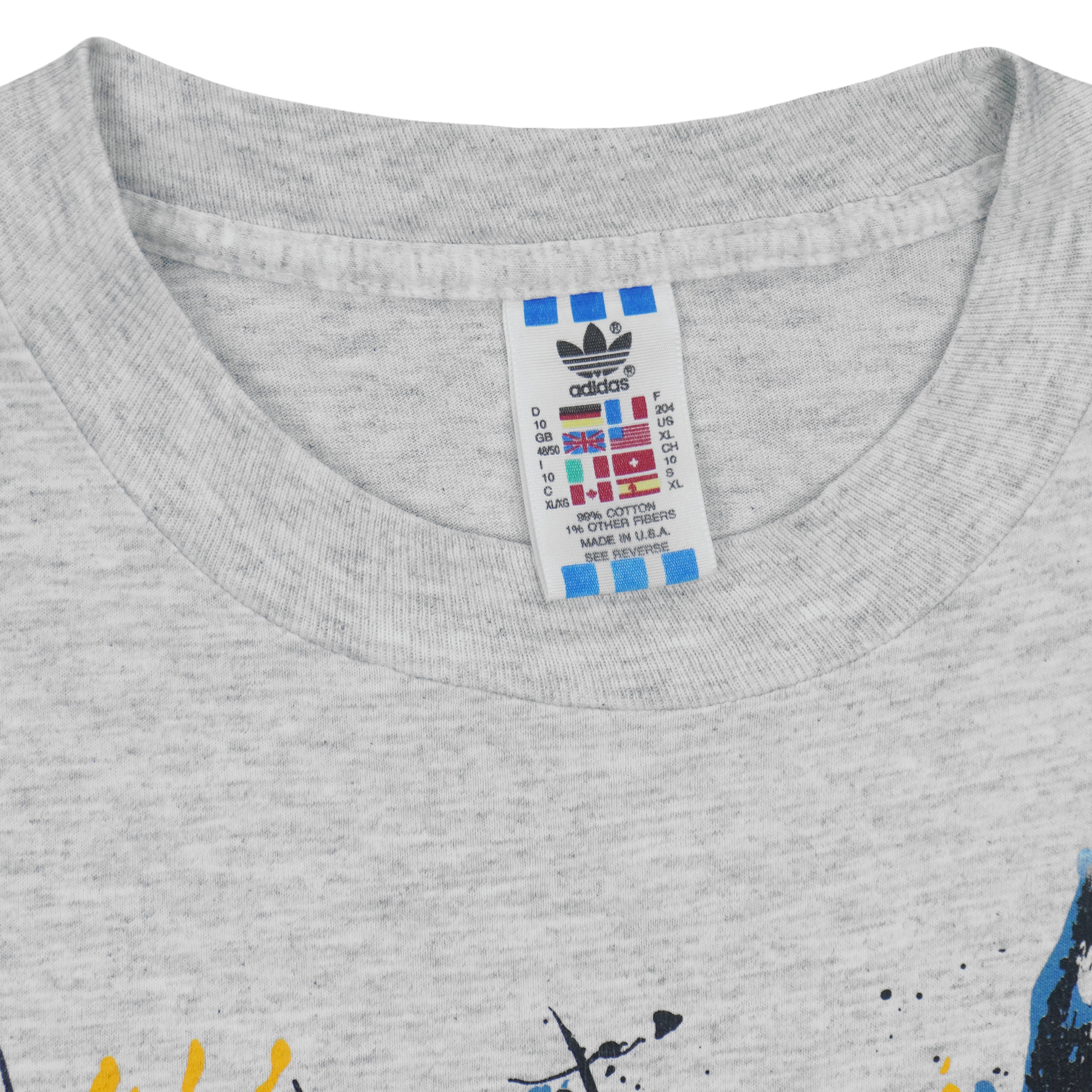 1990s Vintage Adidas Big Logo T-Shirt. Grey in color, fitting an X-large size with signs of wear and is otherwise in very good condition.