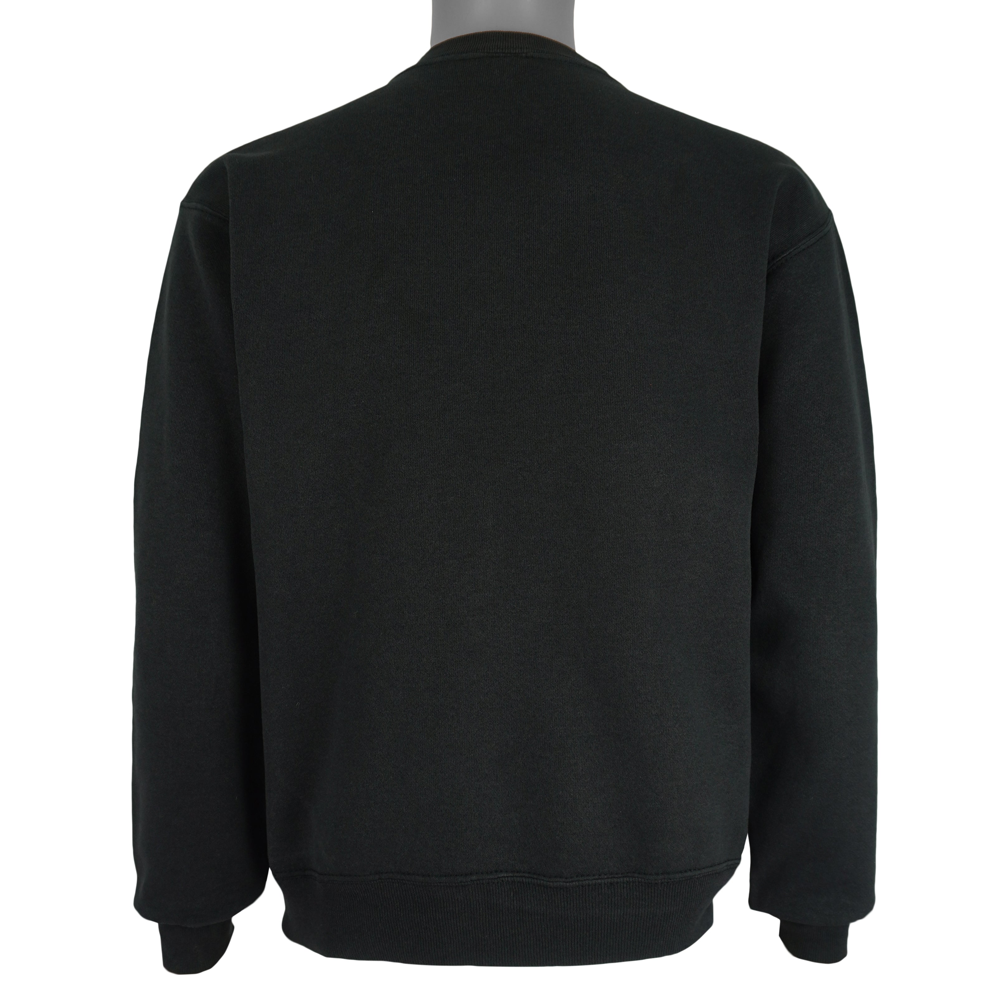 1990s Vintage NFL Pittsburgh Steelers Crew Neck Sweatshirt by Trench. Black in color, with big spell-out, fitting a medium size with signs of wear, shows aging on screen print and is otherwise in very good condition.