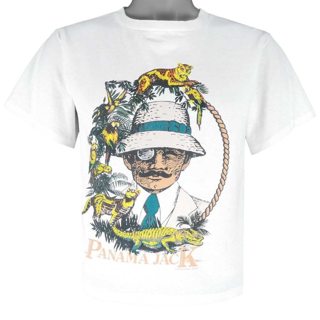 Vintage - White Panama Jack Single Stitch T-Shirt 1990s Medium Lady