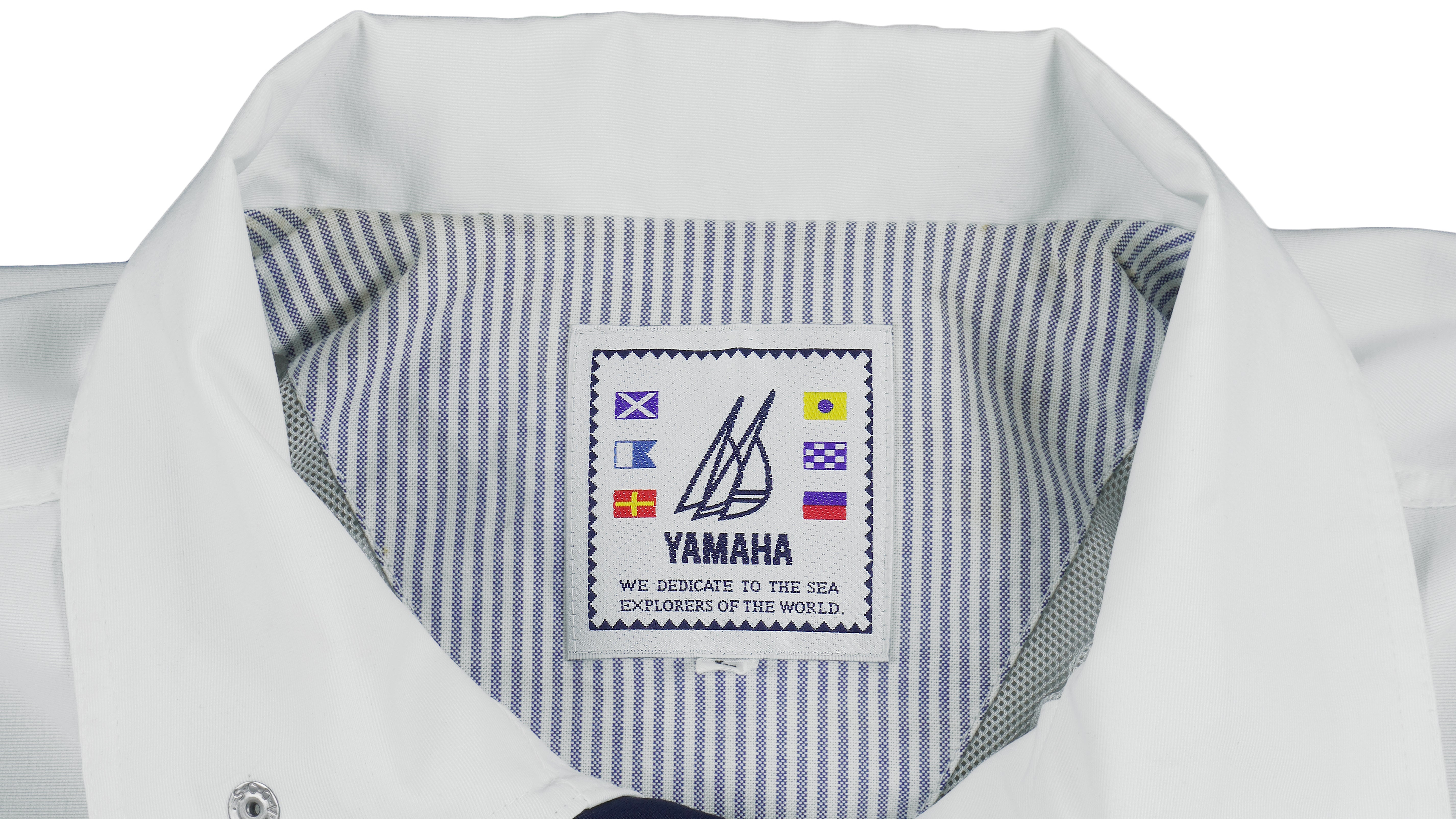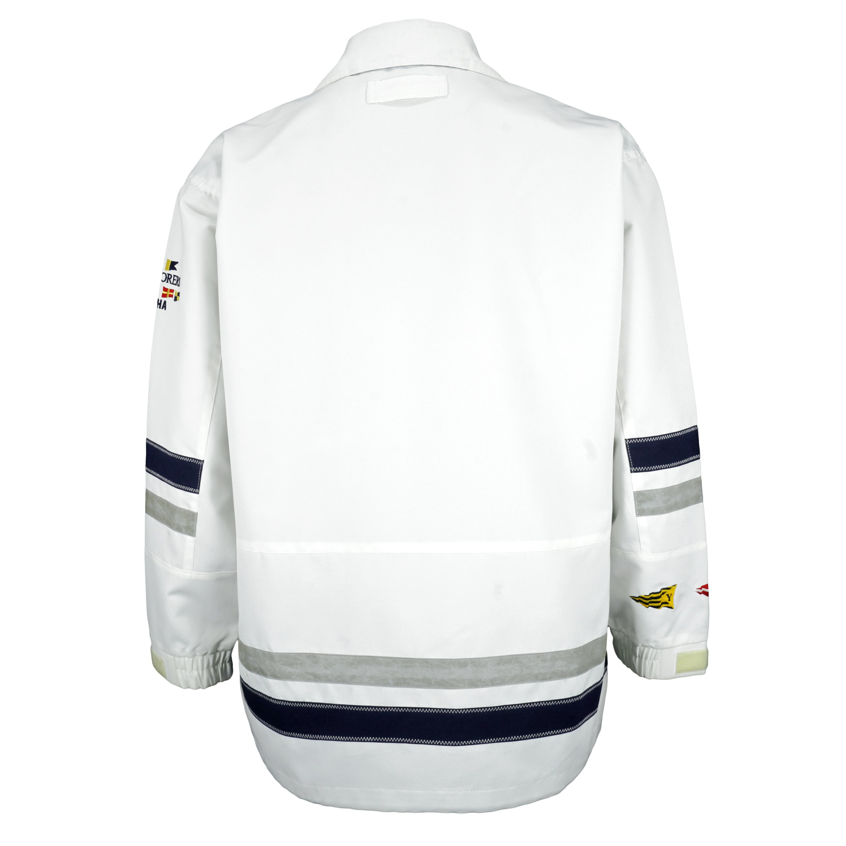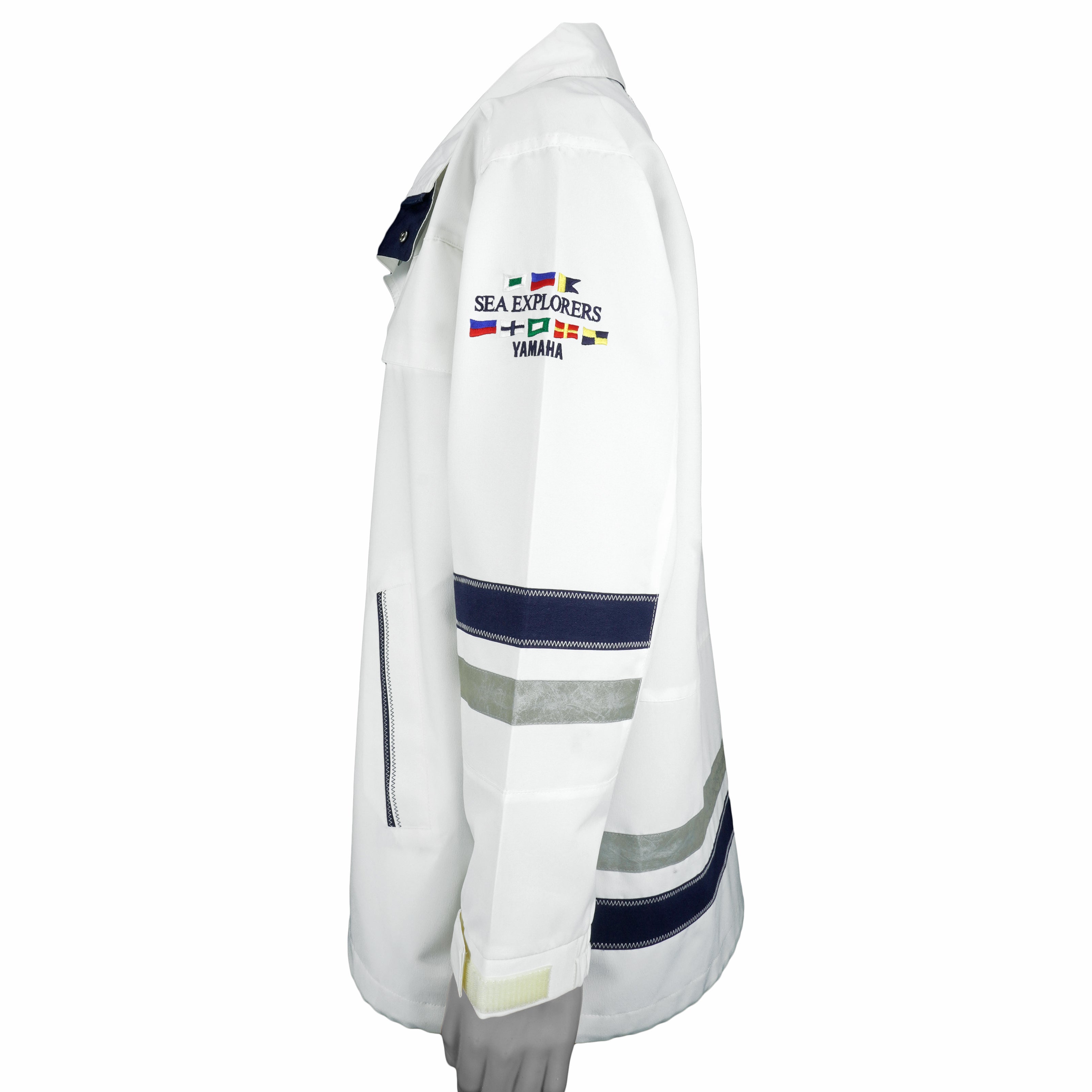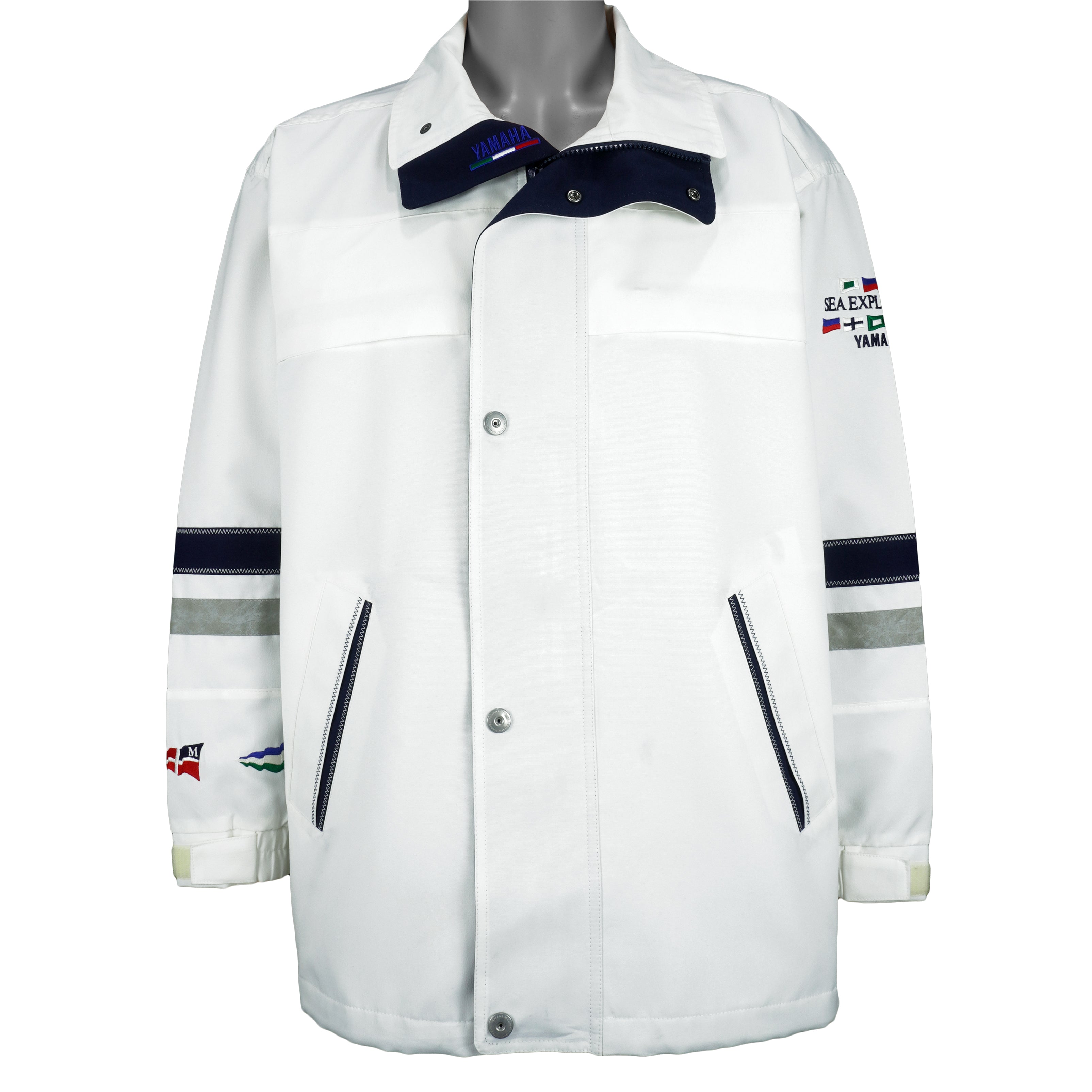 1990s Vintage Yamaha, Sea Explorers Spell-Out Windbreaker. White in color and fits large size and is in excellent condition.