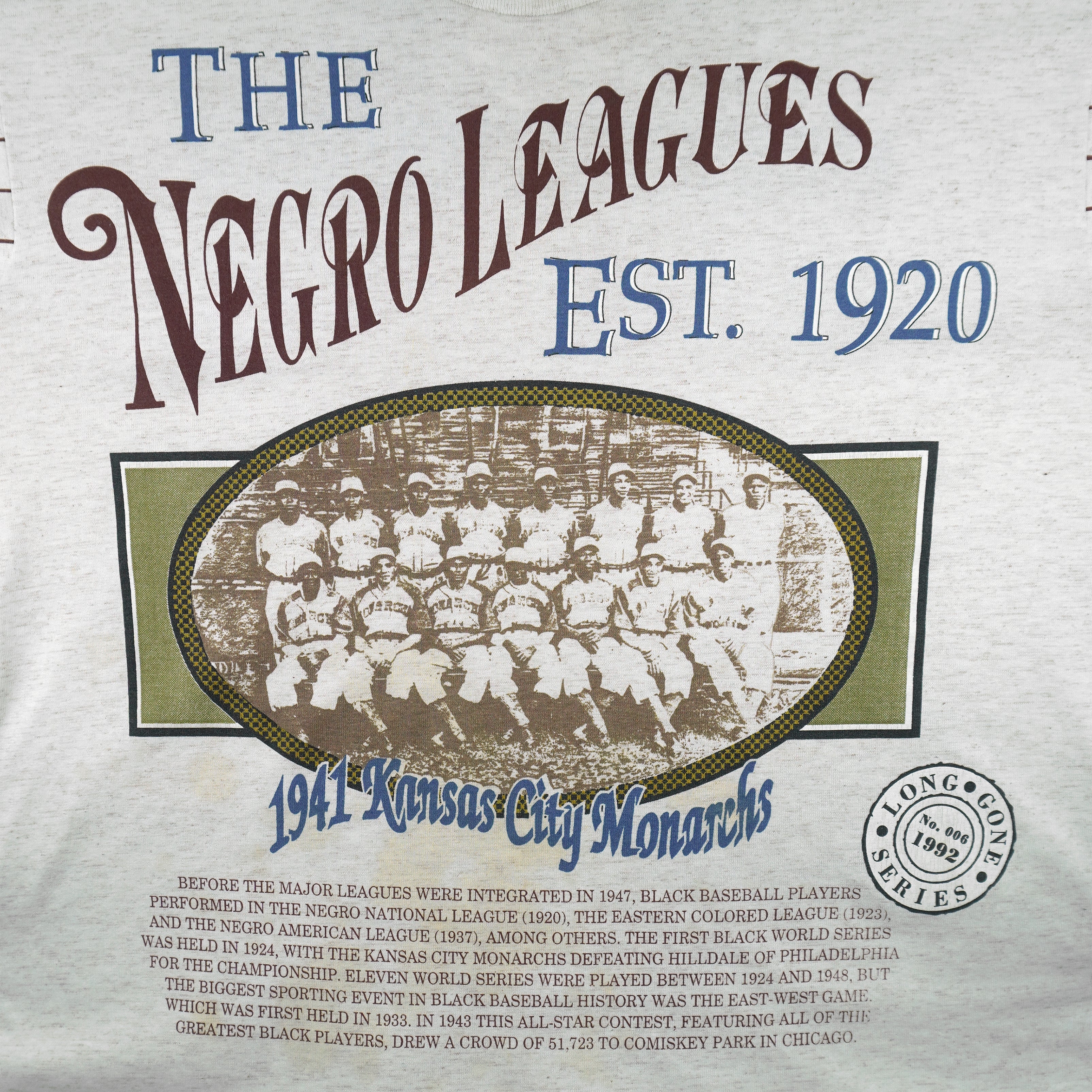 MLB (Long Gone) - The Negro Leagues 1920 Kansas City Monarch T-Shirt 1992 Large