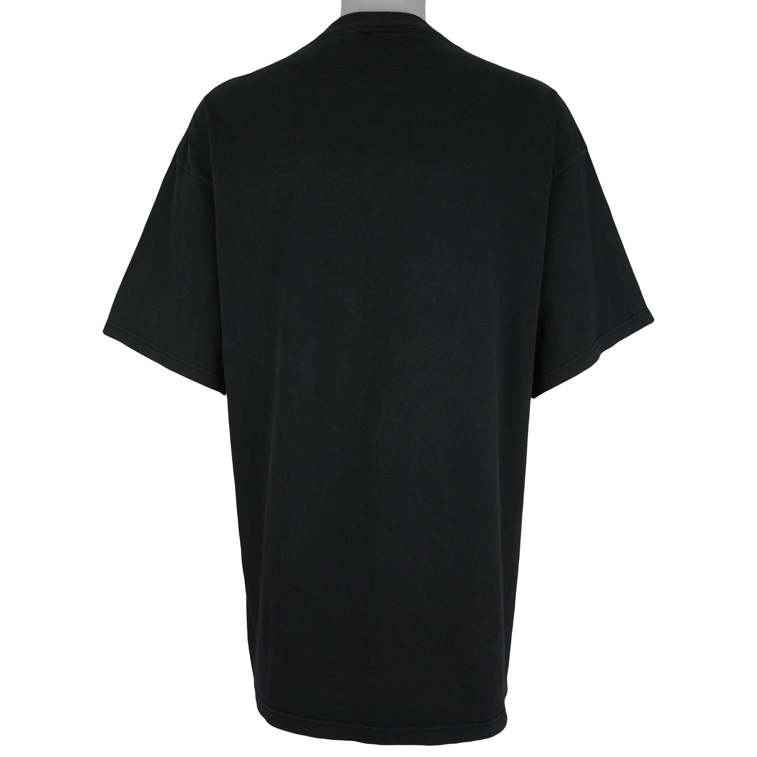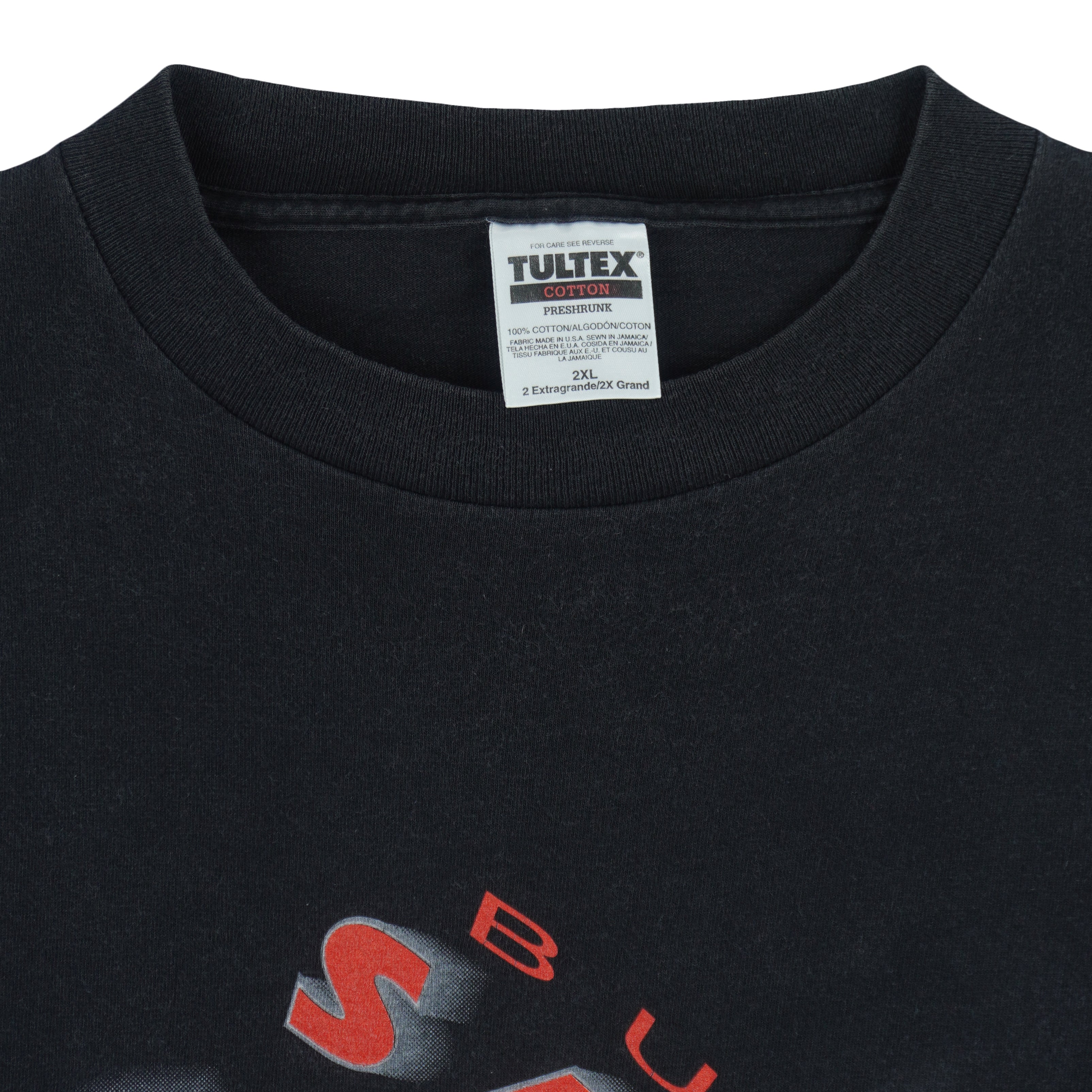 1990s Vintage NHL Buffalo Sabres T-Shirt by Tultex. Black in color, spell-out, fitting an XX-large size with signs of wear - minor marks and is otherwise in very good condition.