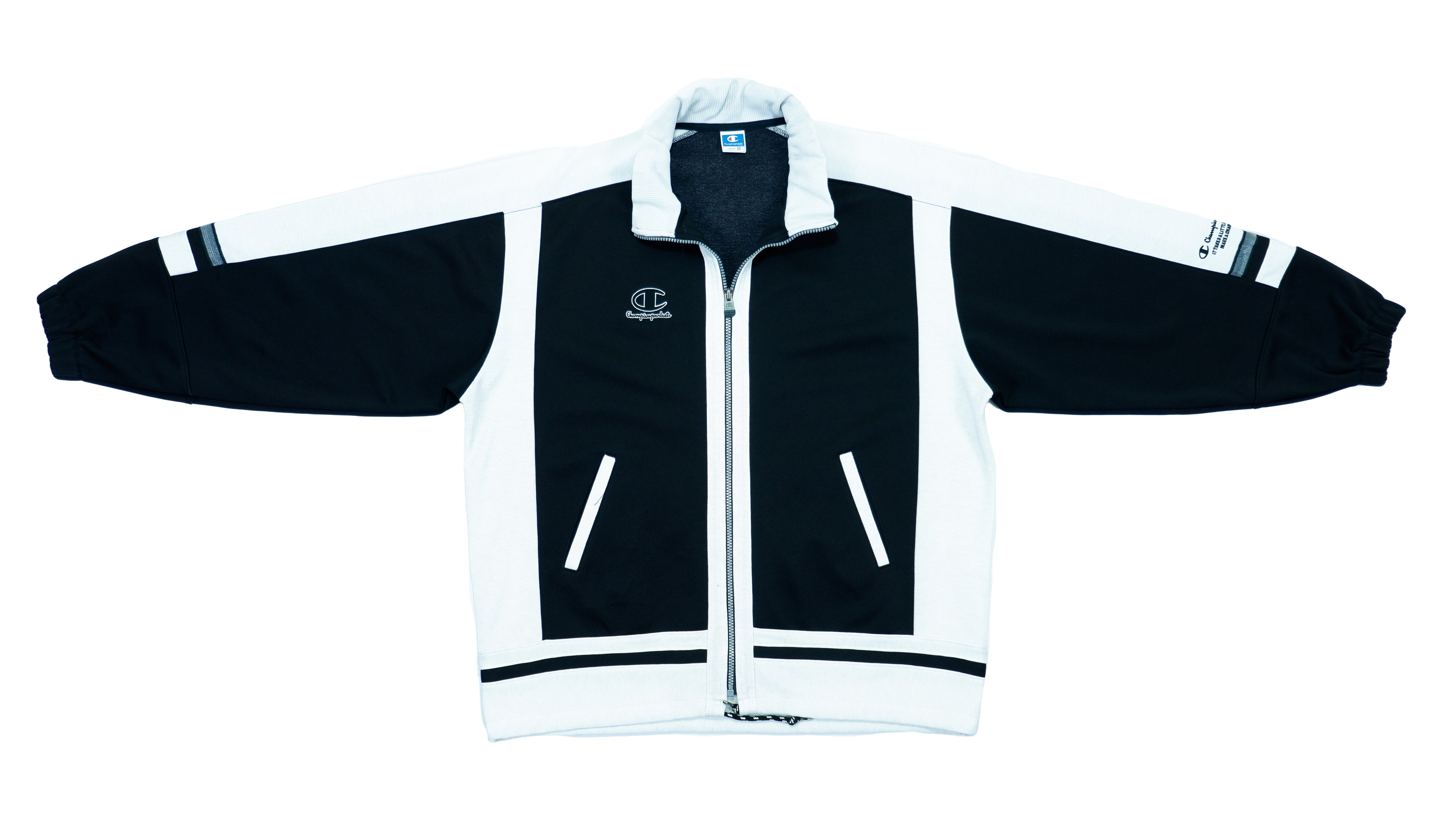 Champion - Black and White Zip-Up Track Jacket with Cinch Waist 1990s X-Large Vintage Retro