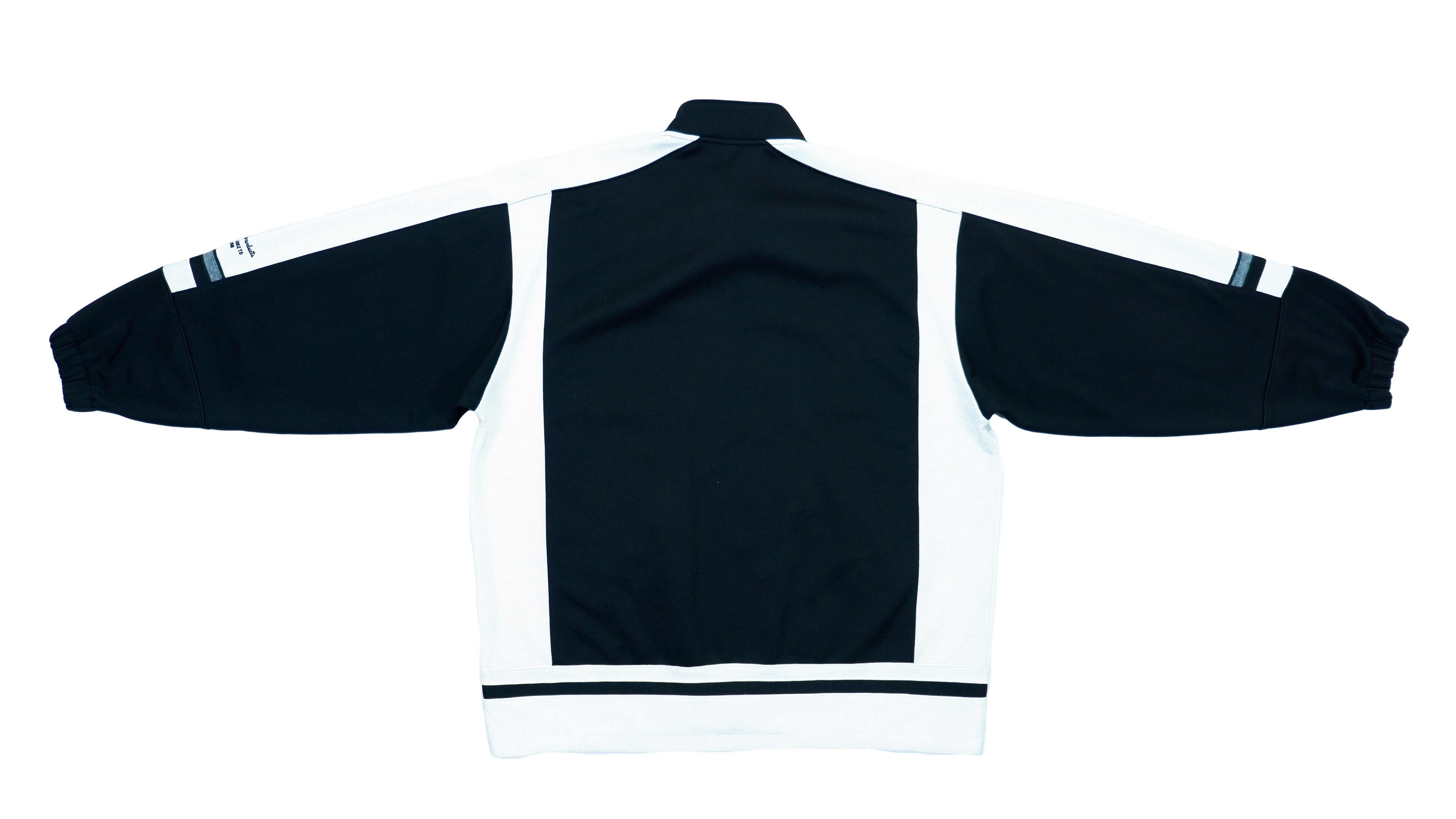Champion - Black and White Zip-Up Track Jacket with Cinch Waist 1990s X-Large