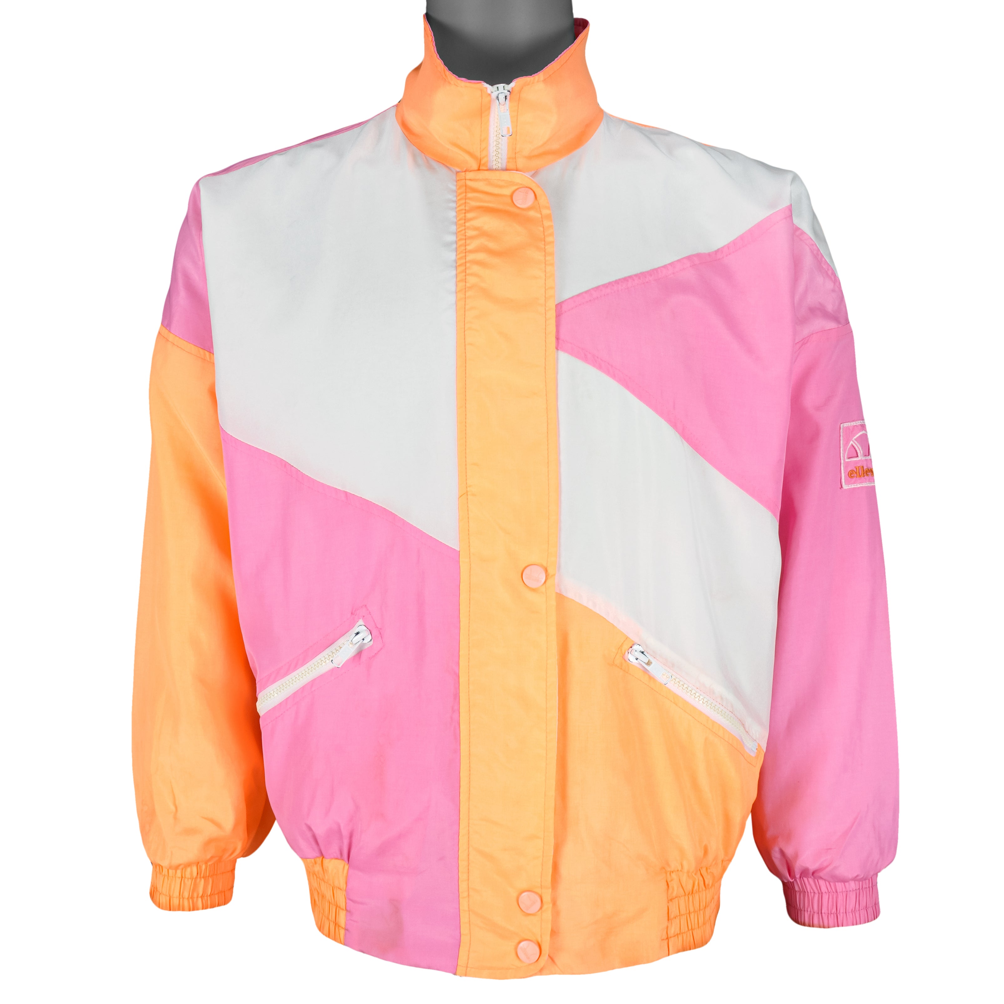 Ellesse - Pink White and Orange Italian Colorblock Zip-Up Jacket 1990s Large