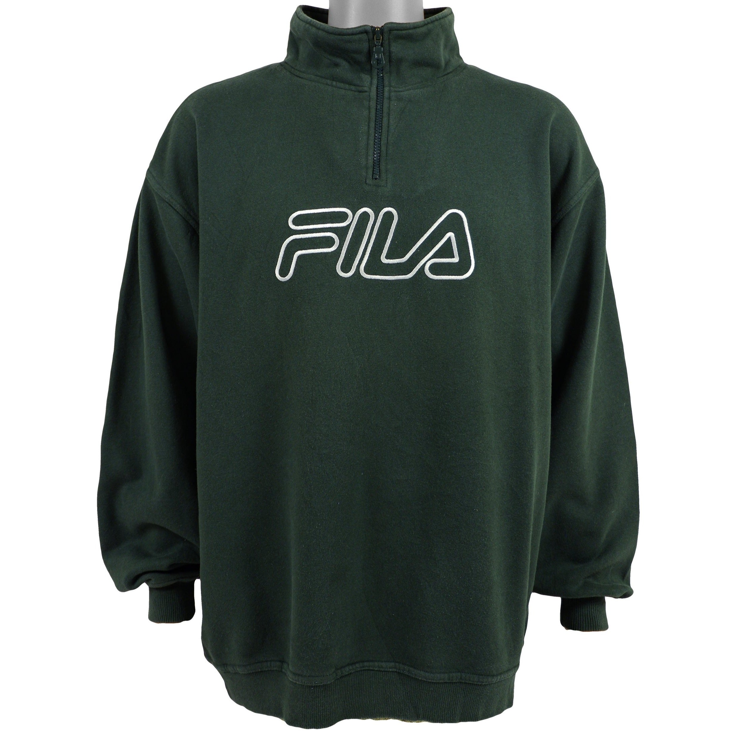 FILA - Green Big Spell-Out 1/4 Zip Sweatshirt 1990s X-Large
