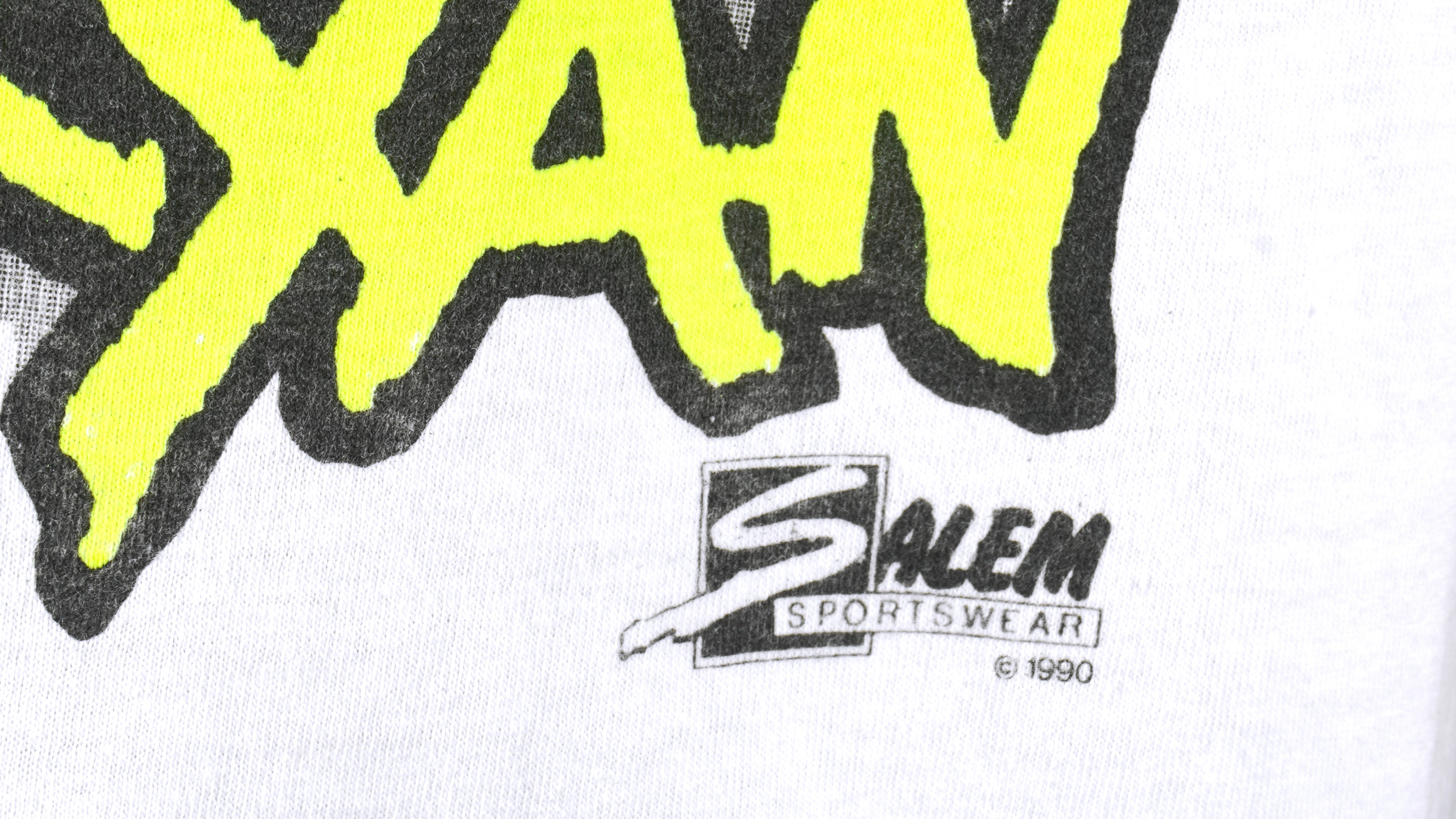 1990 Vintage MLB Rangers Texas Heat Nolan Ryan No.34 T-Shirt by Salem. White in color, fits large size and is in excellent condition.