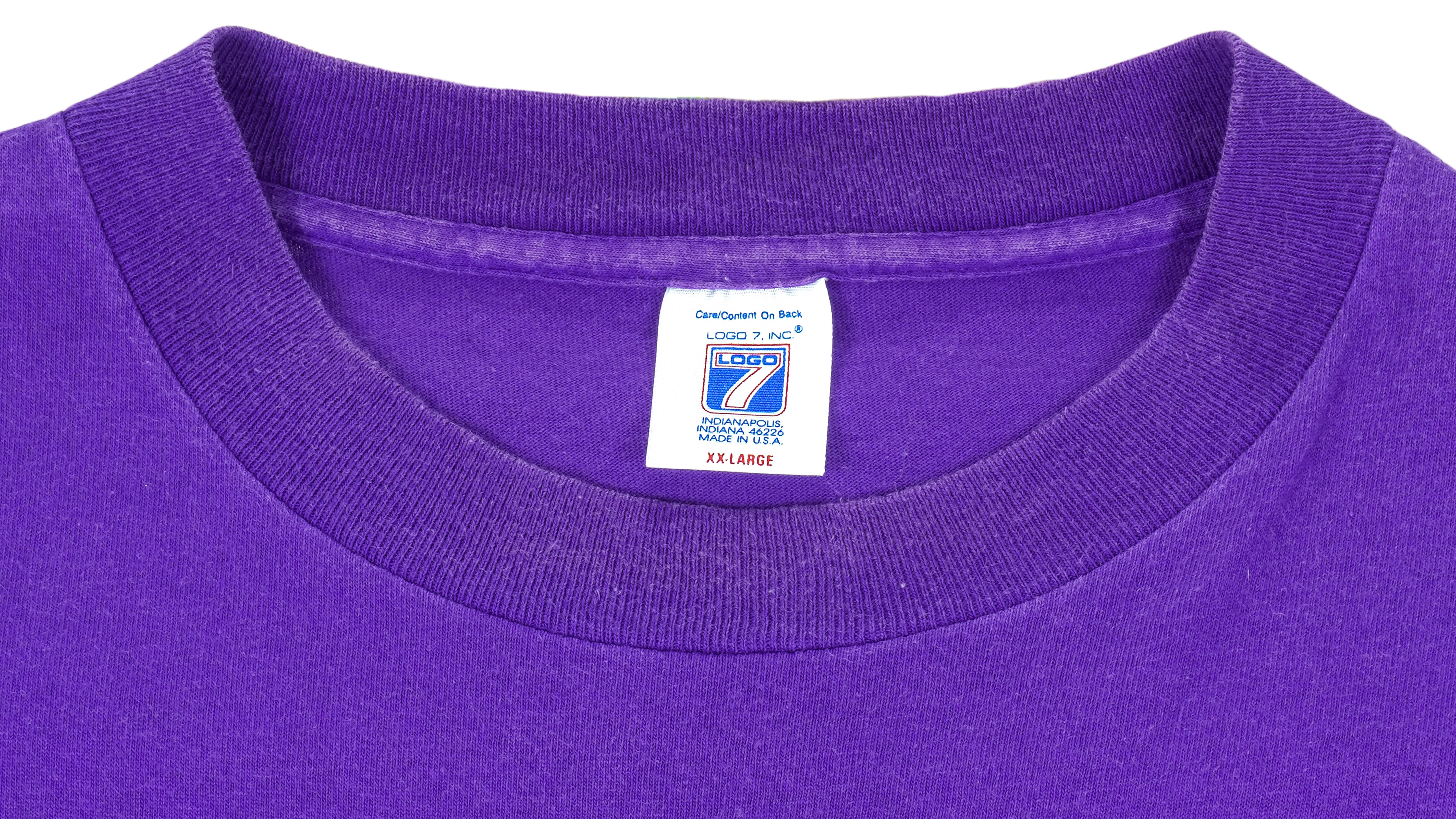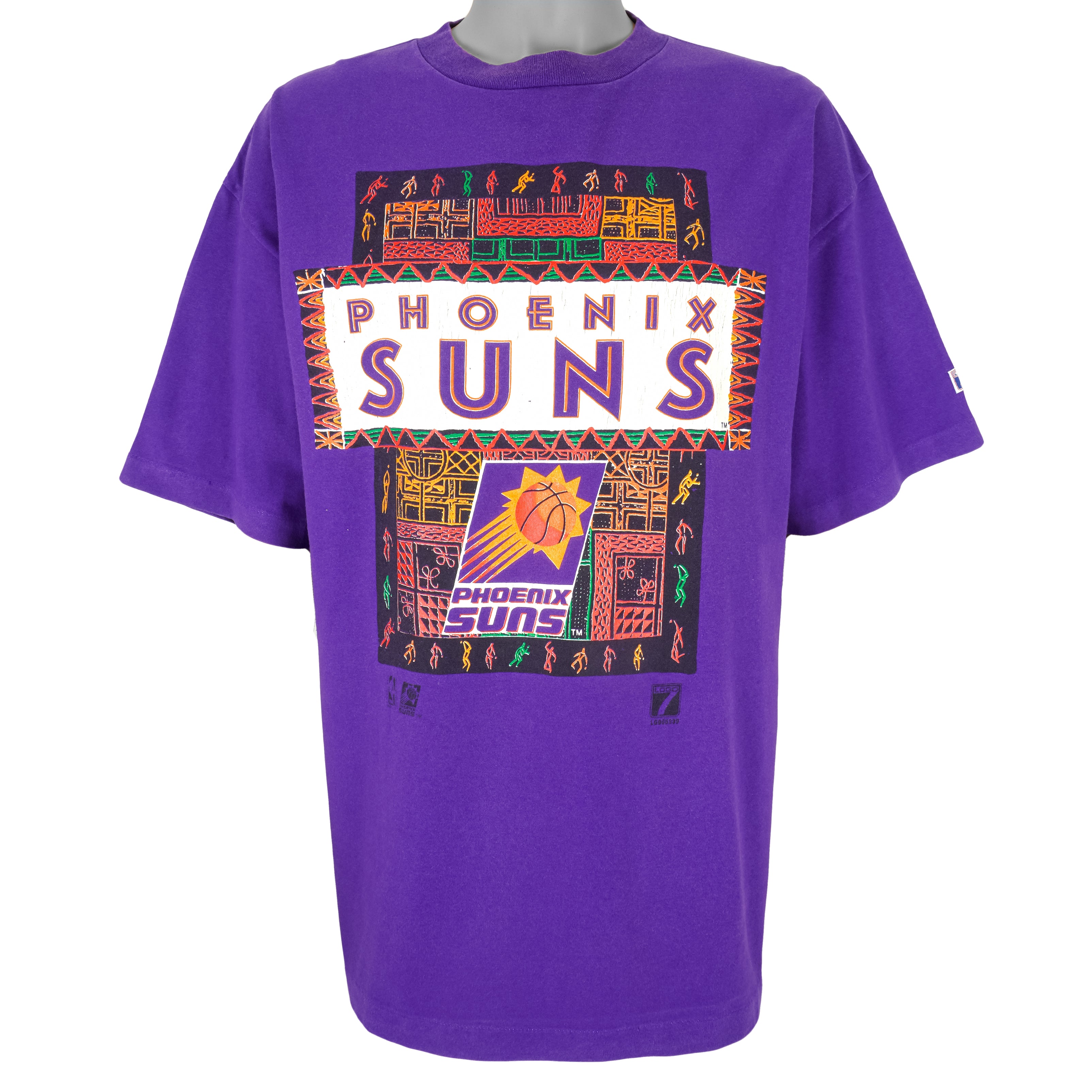 1990s Vintage NBA Phoenix Suns Big Logo & Spell-Out T-Shirt by Logo 7. Purple in color, fits XX-large size and is in excellent condition.