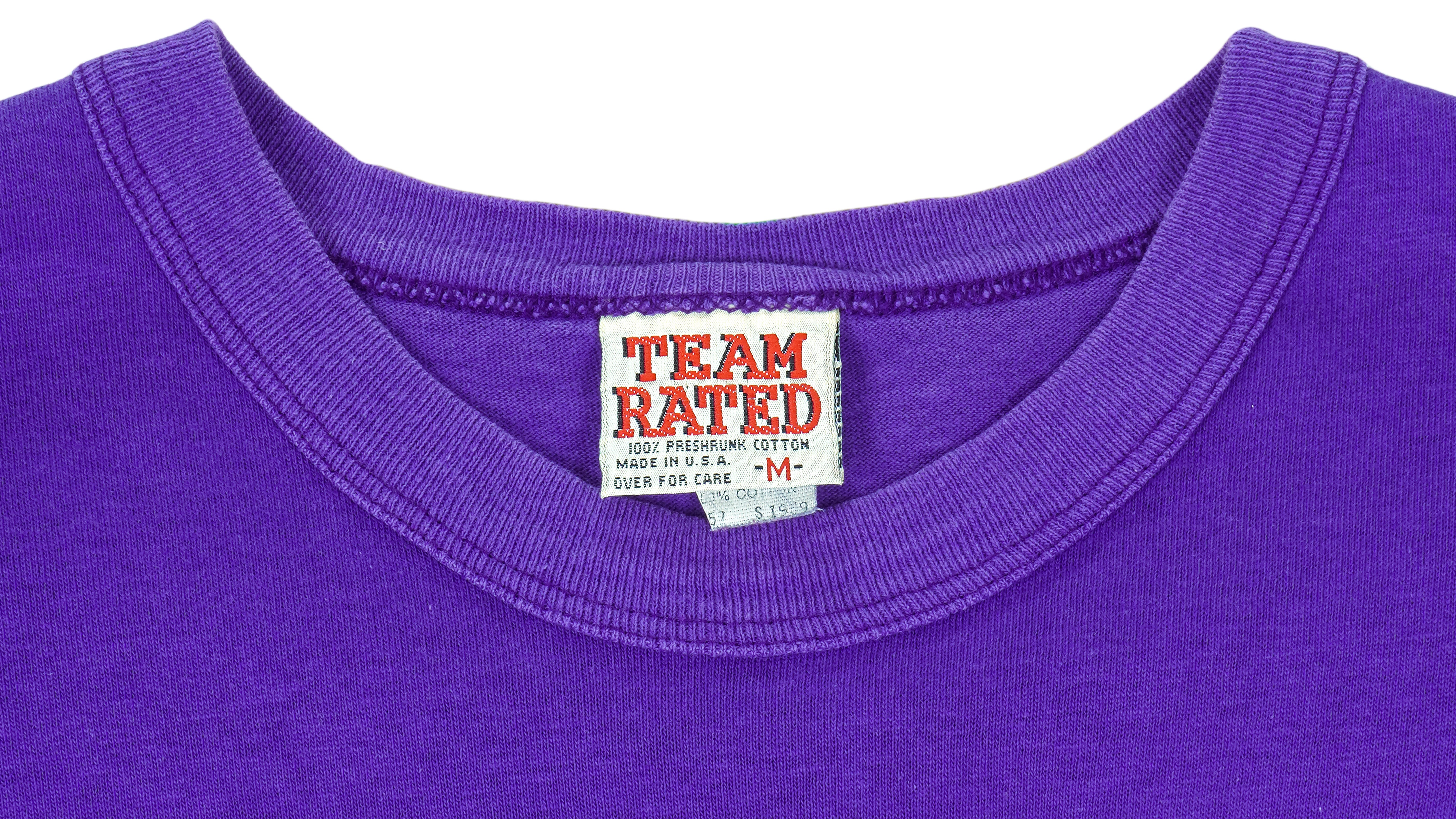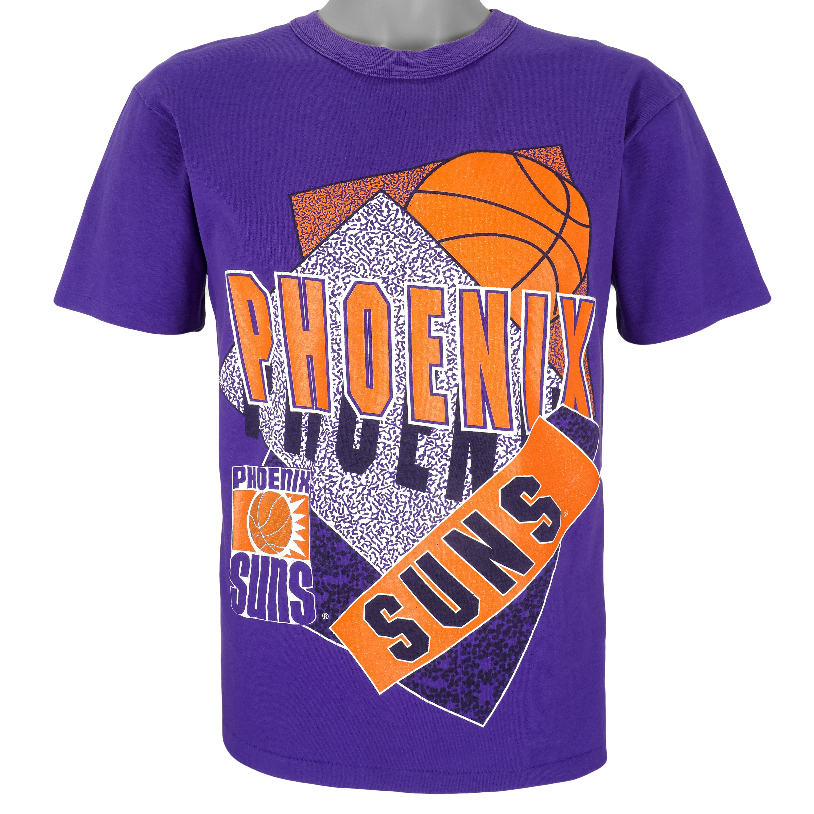 1990s Vintage NBA Phoenix Suns Big Logo & Spell-Out T-Shirt by Team Rated. Purple in color, fits medium size and is in excellent condition.