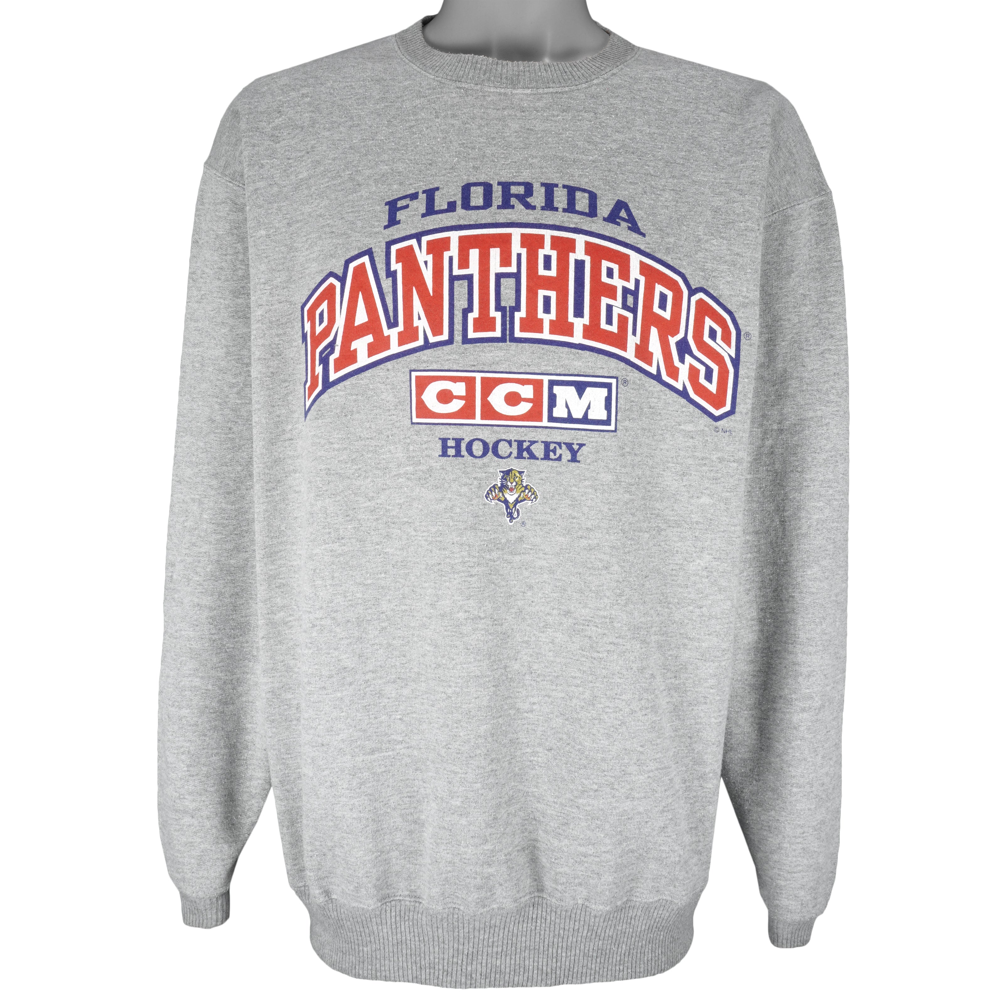 1990s Vintage NHL Florida Panthers Spell-out Crewneck sweatshirt by CCM. Grey​ in color, tag is medium but fitting like large size and is in excellent condition.