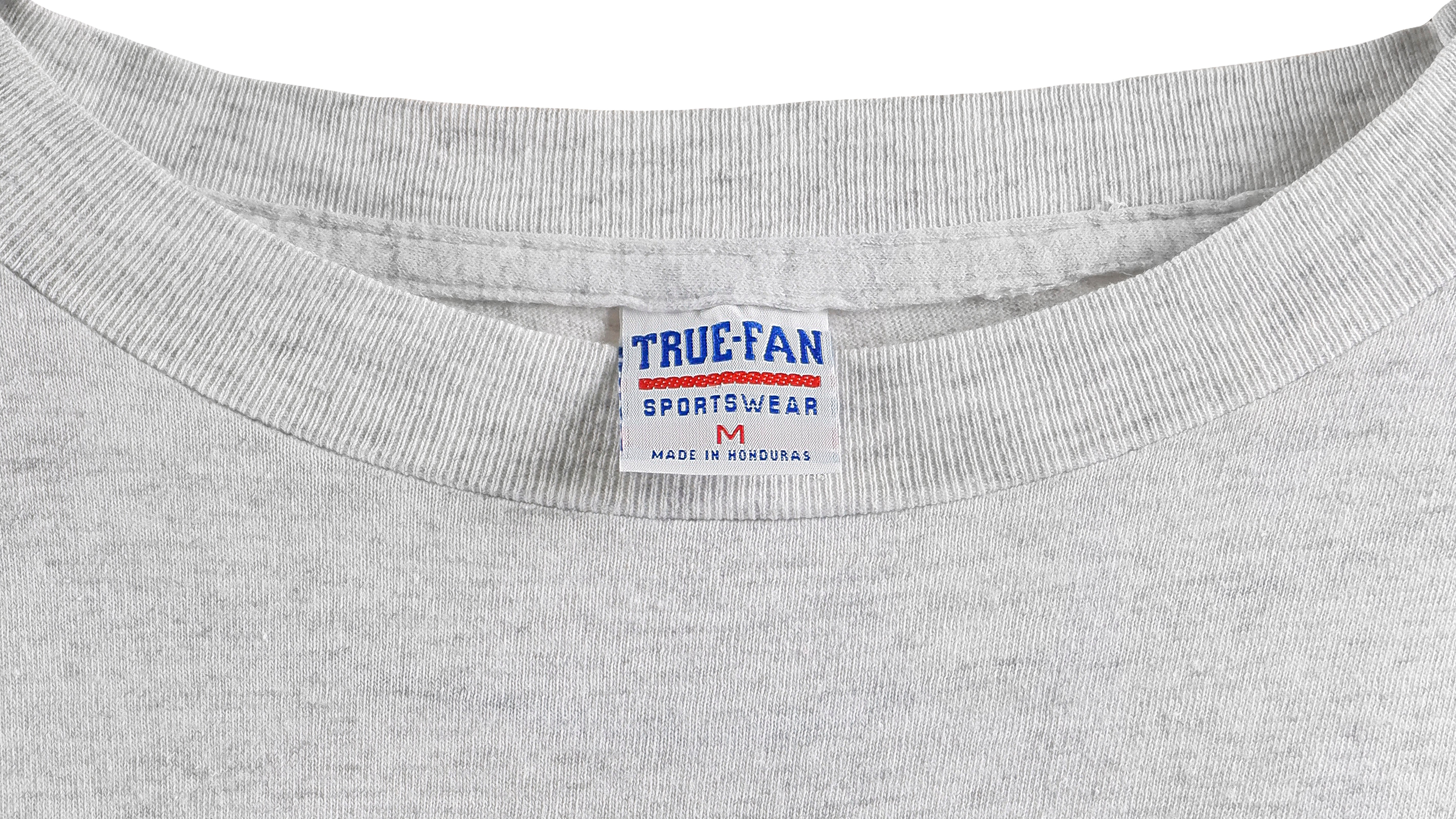 1995 NHL Philadelphia Flyers T-Shirt by True-Fan. Grey in color, spell-out, this Tee fits medium and is in excellent condition.