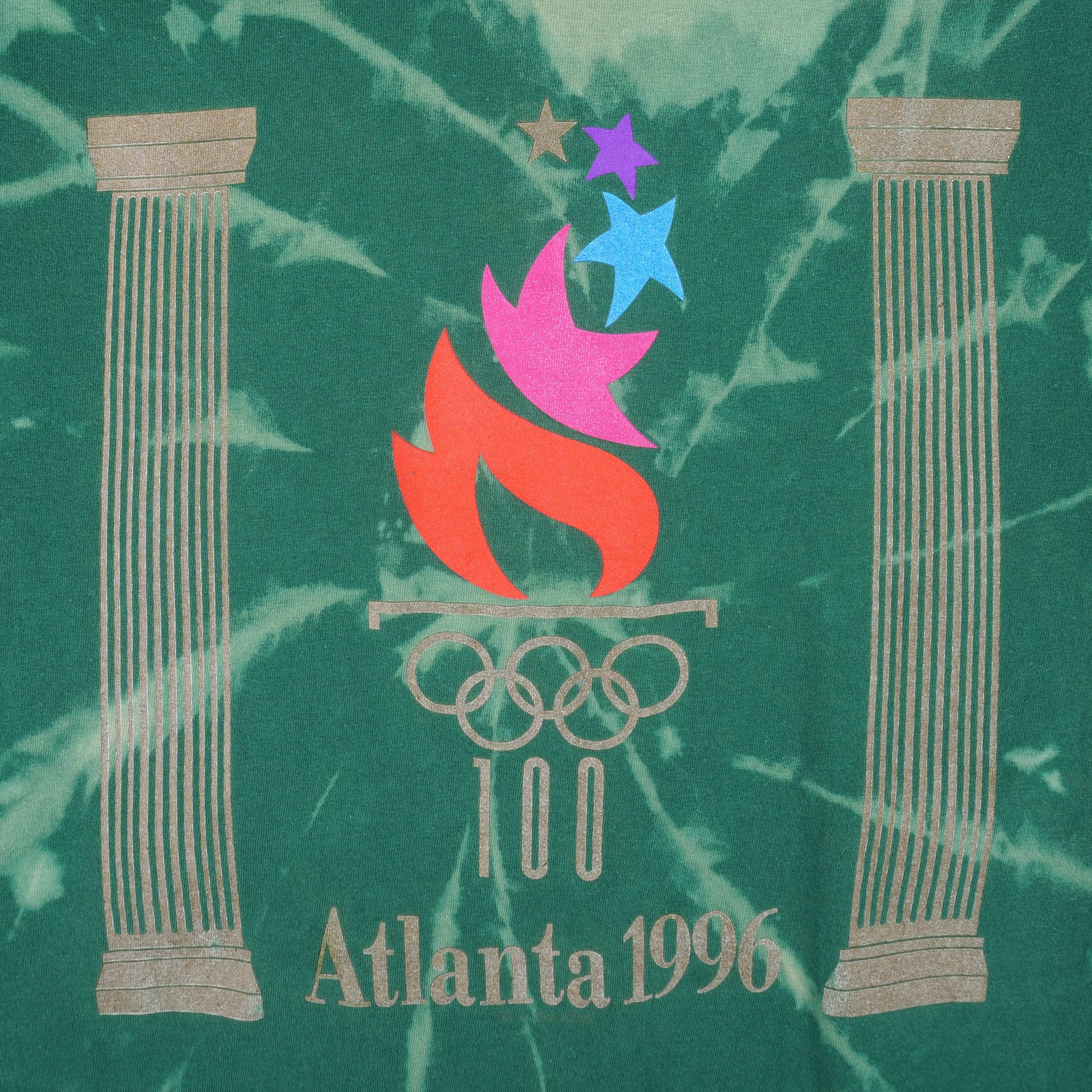 1996 Vintage Atlanta 1996 Olympic T-Shirt by Hanes. Green in color with big spell-out, fits large size and is in excellent condition.