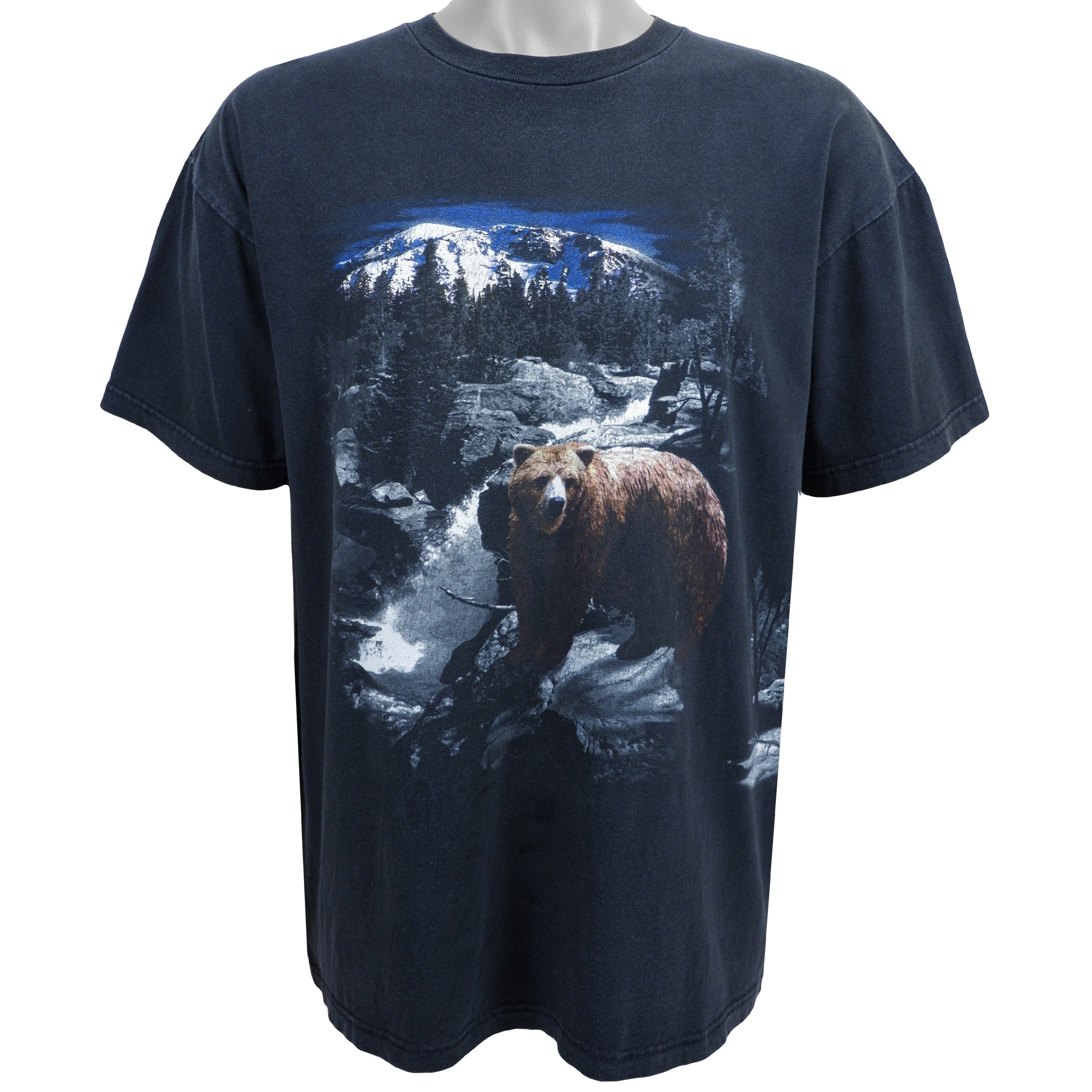 1990s Vintage Wildlife Brown Bear Printed T-Shirt. Black in color, fits X-large size and is in excellent condition.
