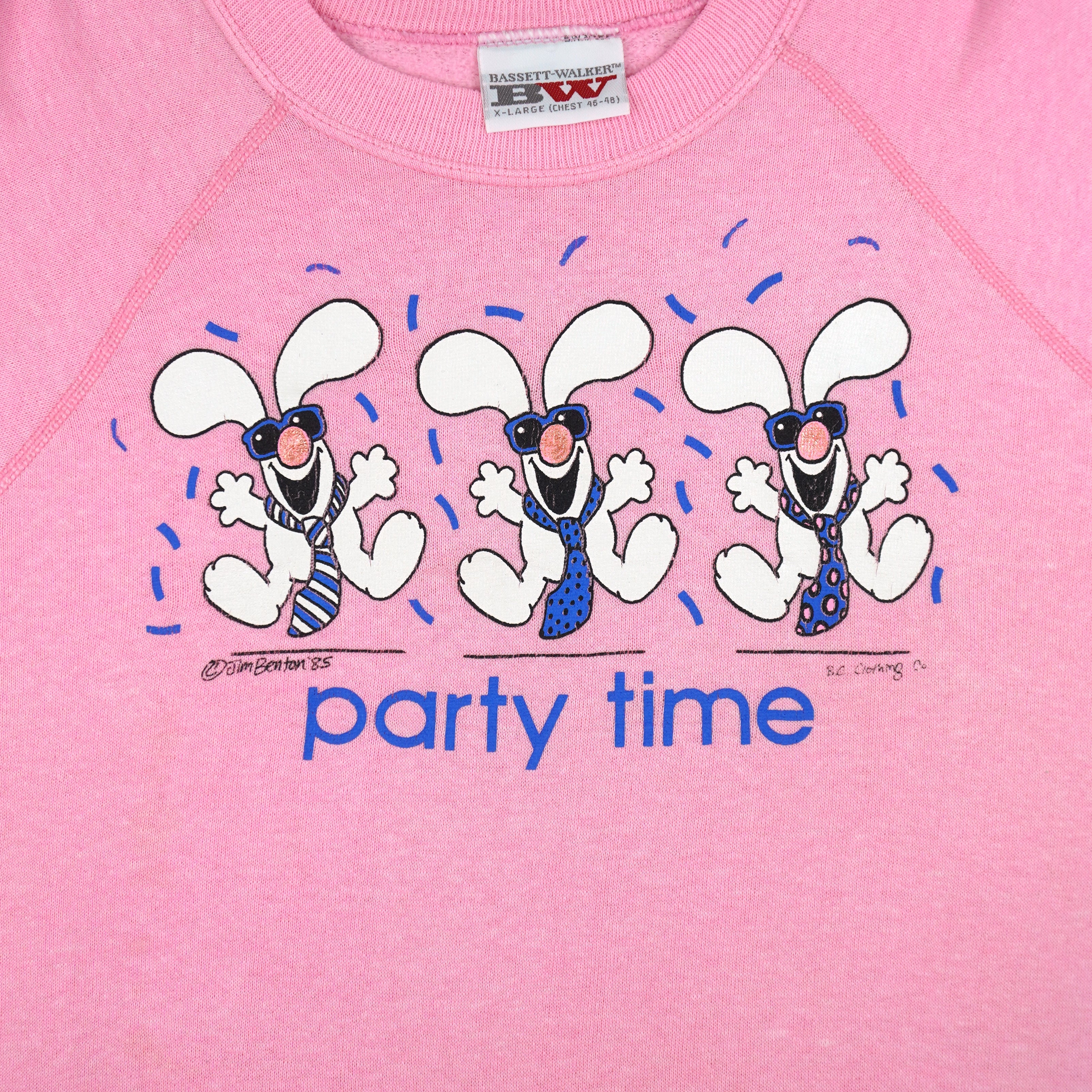 Vintage (BW) - Party Time Bunny Crew Neck Sweatshirt 1985 X-Large Vintage Retro