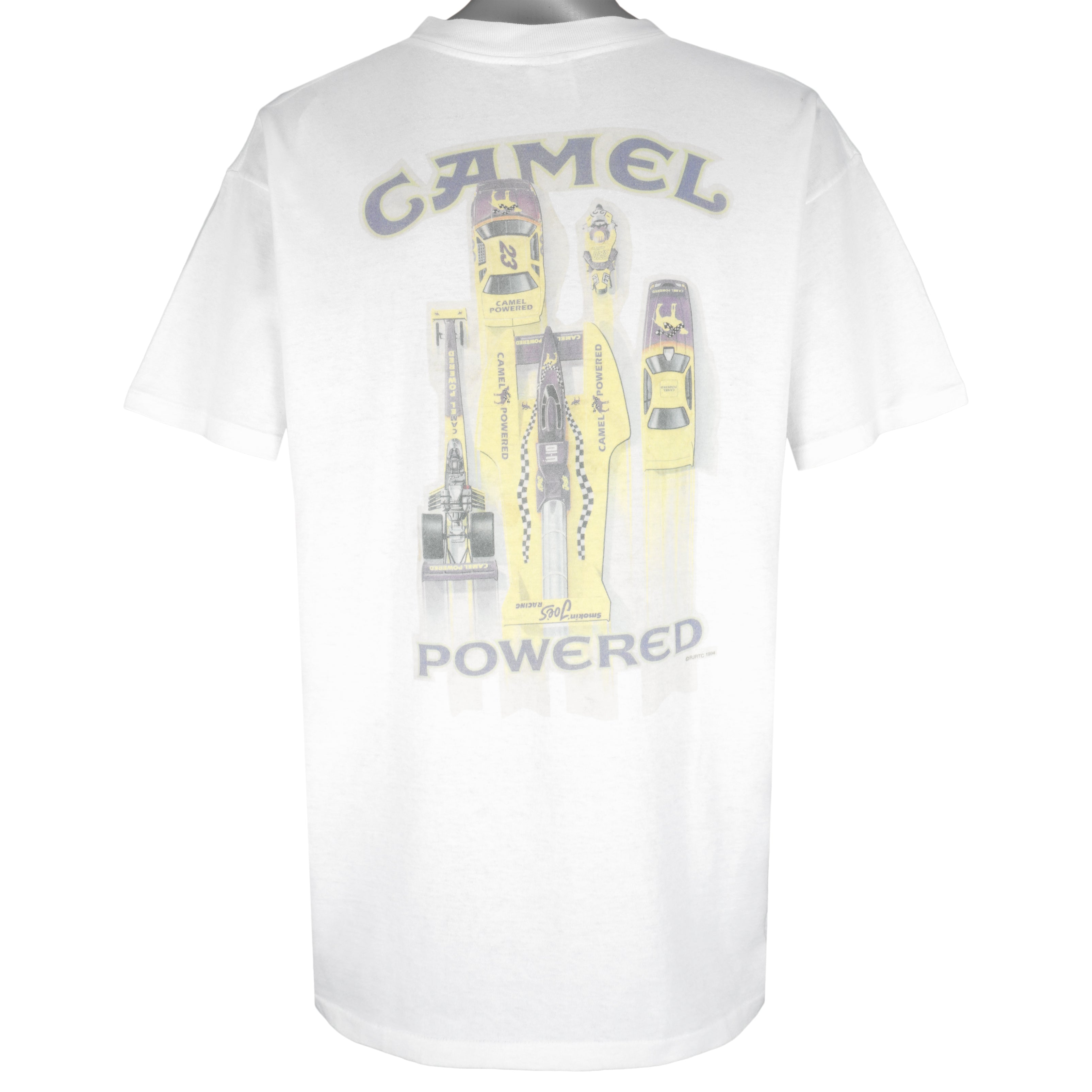 1994 Vintage Smokin Joe Racing Camel Powered Spell-Out T-Shirt by Delta. White in color, fits X-large size and is in excellent condition.