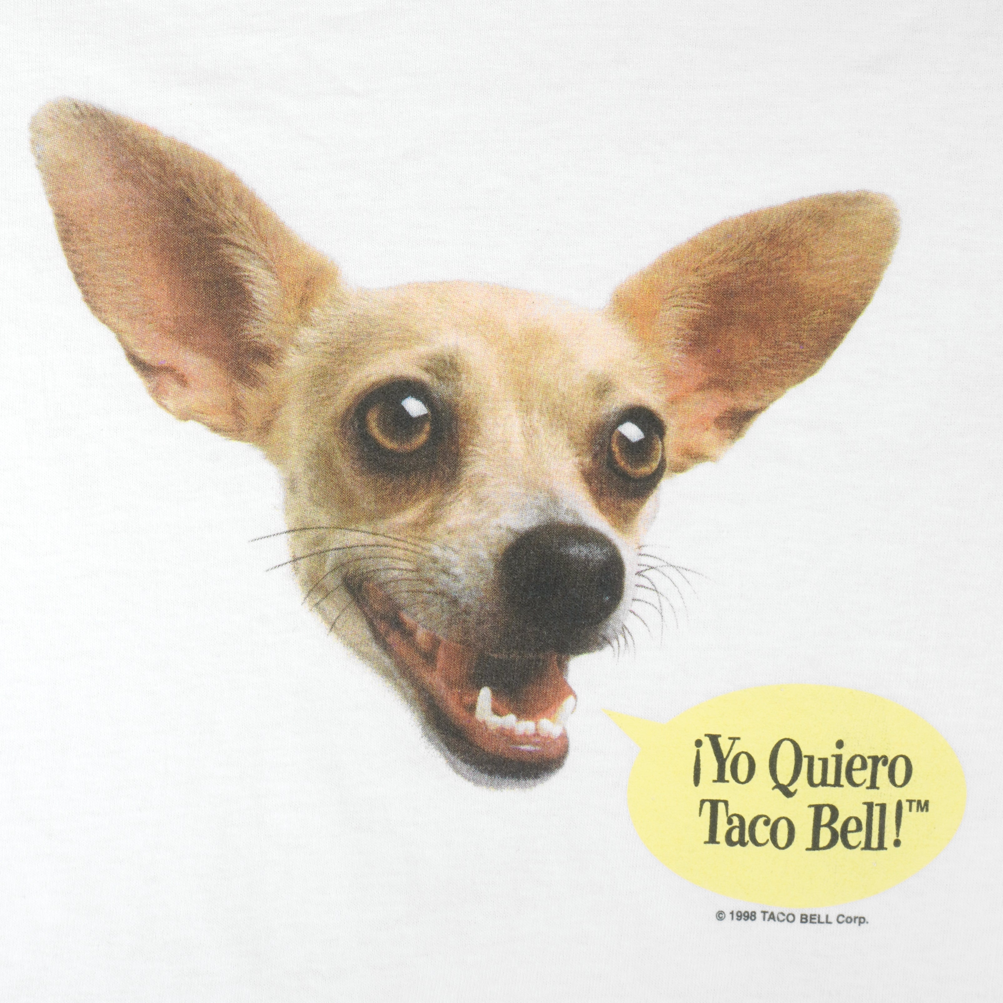 1998 Vintage Yo Quiero Taco Bell Dog T-Shirt by Hanes. White in color with spell-out, fits large size and is in excellent condition.