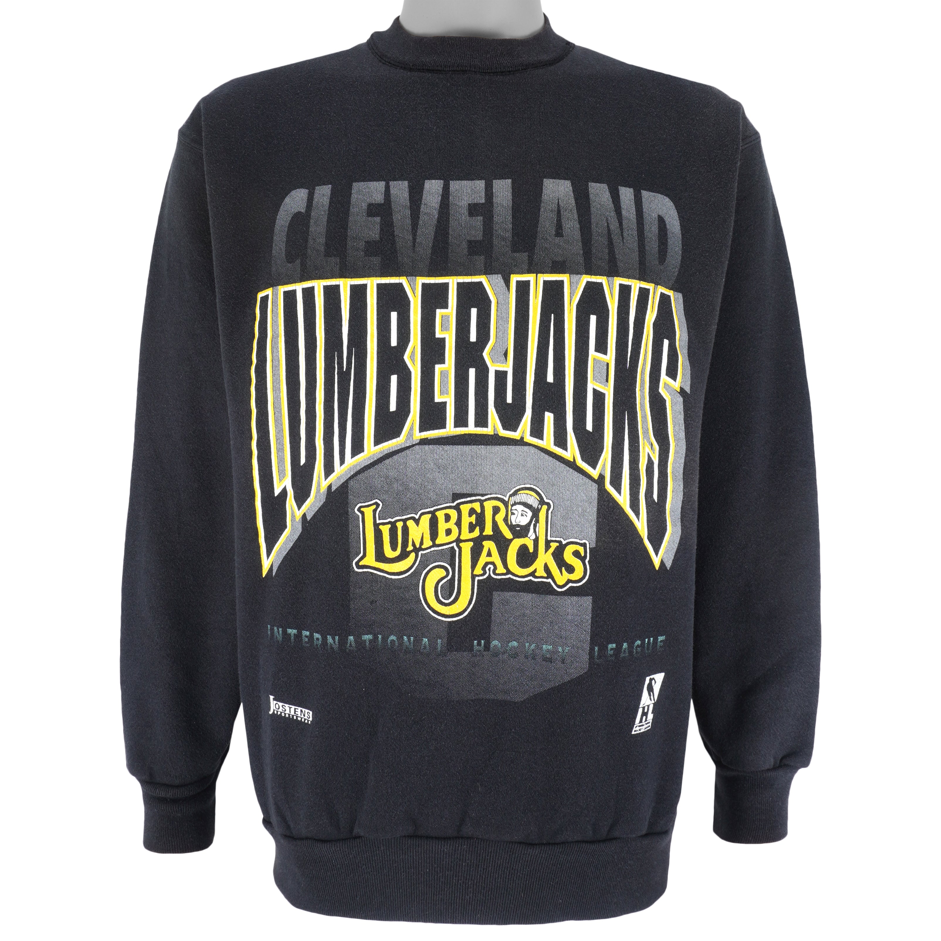 1990s vintage Cleveland Lumberjacks International Hockey League sweatshirt by Jostens. Black in color, fits Large size and is in excellent condition.