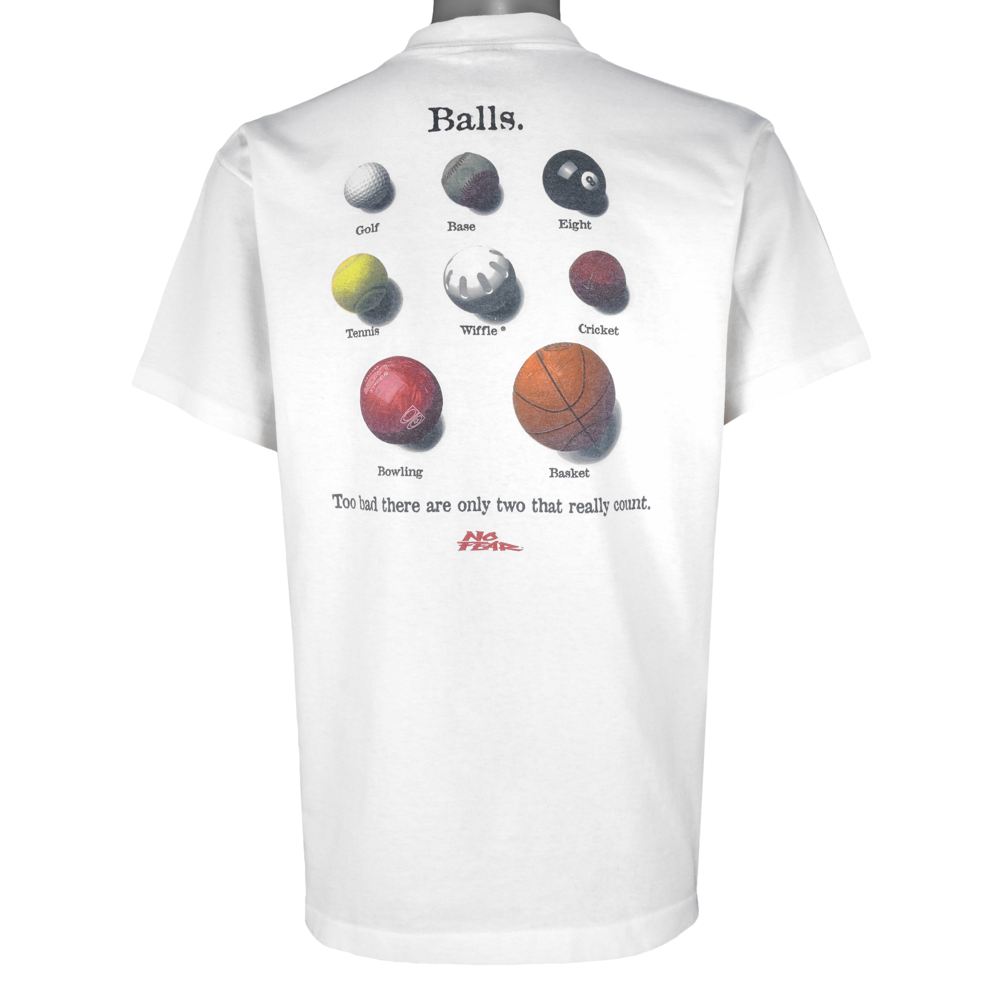 Vintage (No Fear) - Balls Too Bad There Are Only Two That Really Count  T-Shirt 1990s Large Vintage Retro