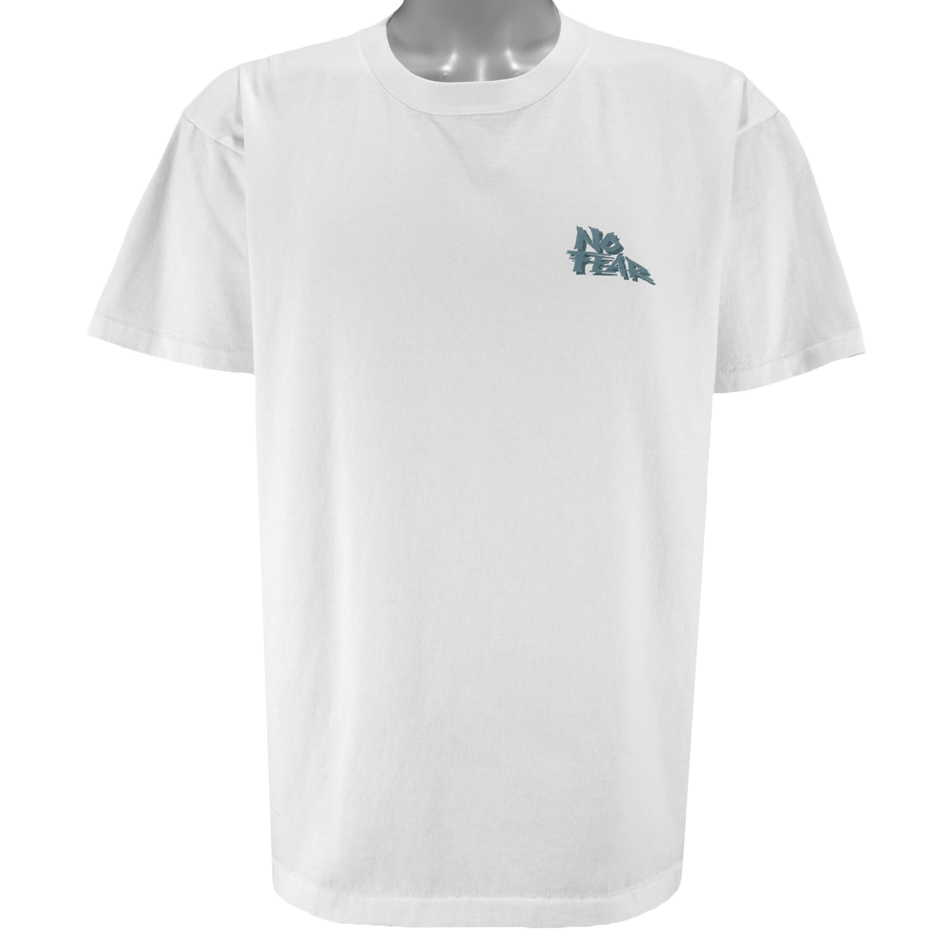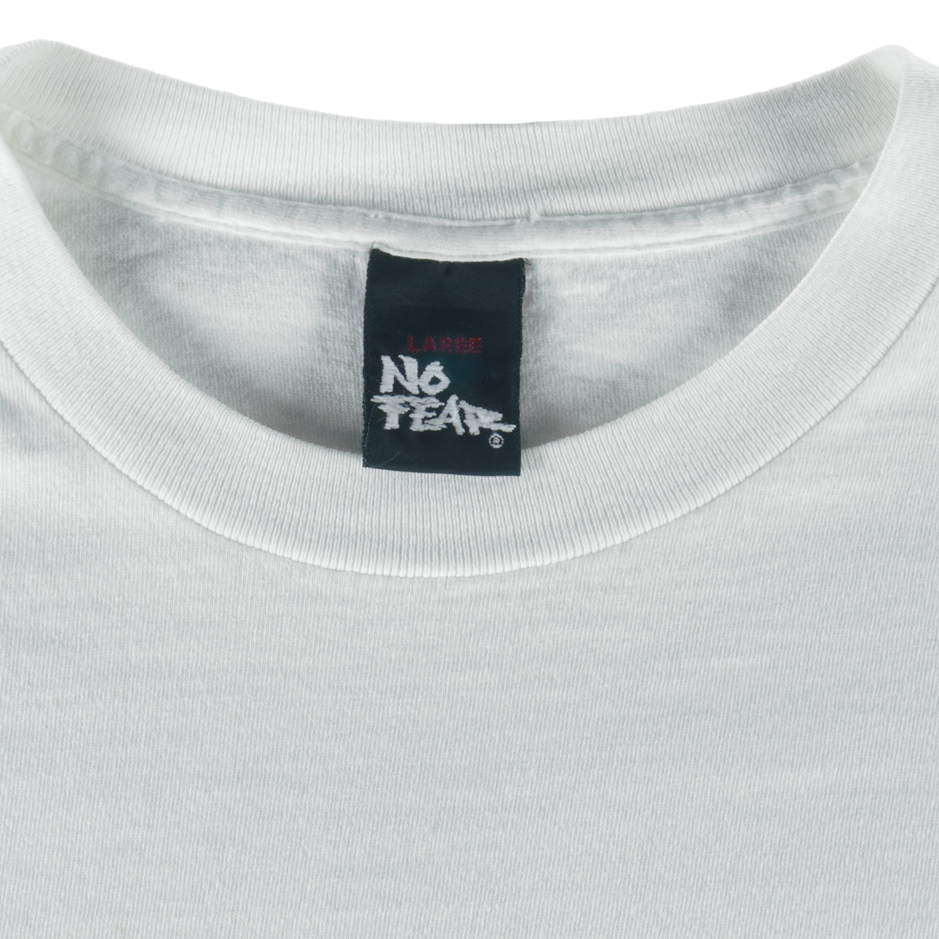 1990s Vintage No Fear No Crybabies Single Stitch T-Shirt. Off white in color, fits a large size with minor marks, signs of wear and is otherwise in very good condition.