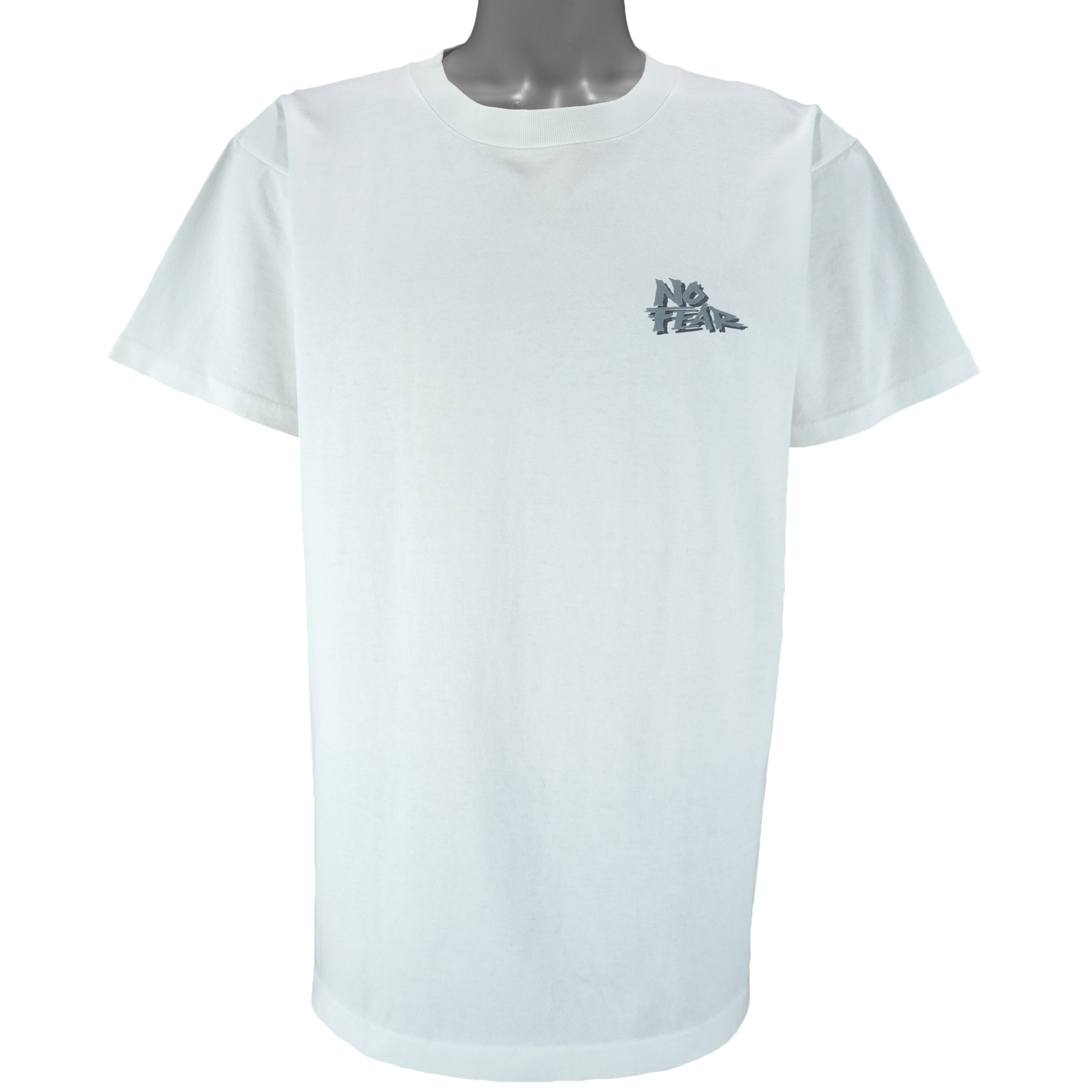 1990s Vintage No Fear You Can't Steal Second With Your Foot On First T-Shirt. White in color, fits large size and is in excellent condition.