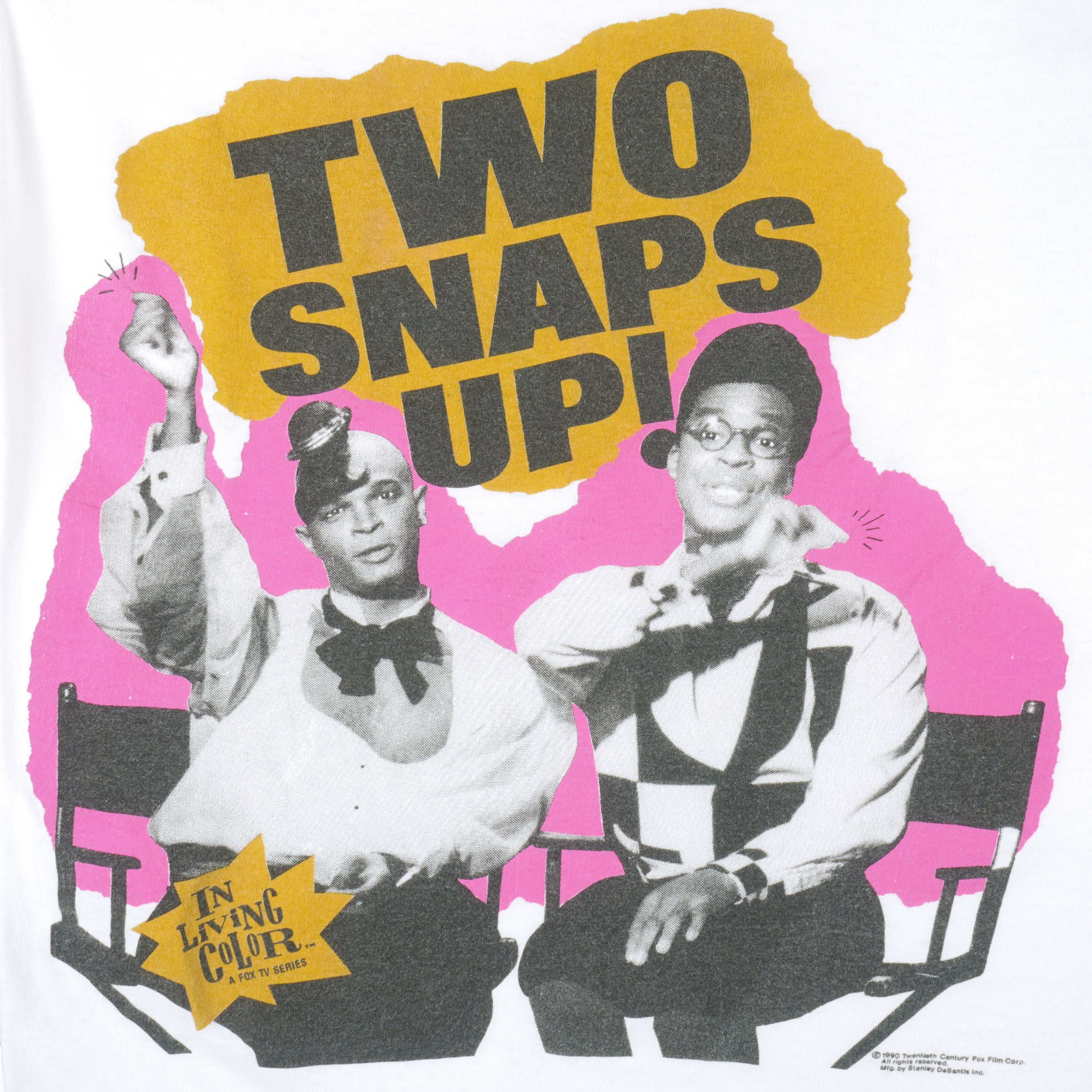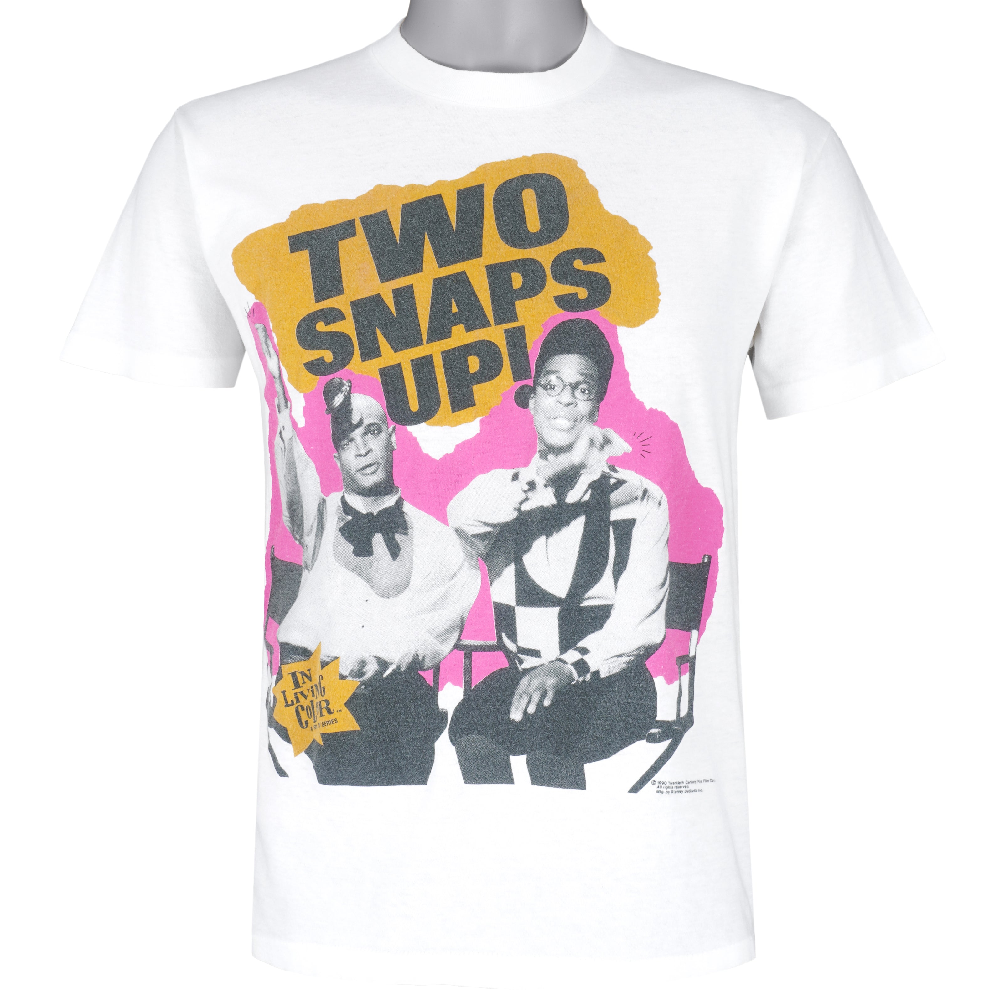 1990 Vintage Two Snaps Up, In Living Color T-Shirt by Belton. White in color with spell-out, fits medium size and is in excellent condition.