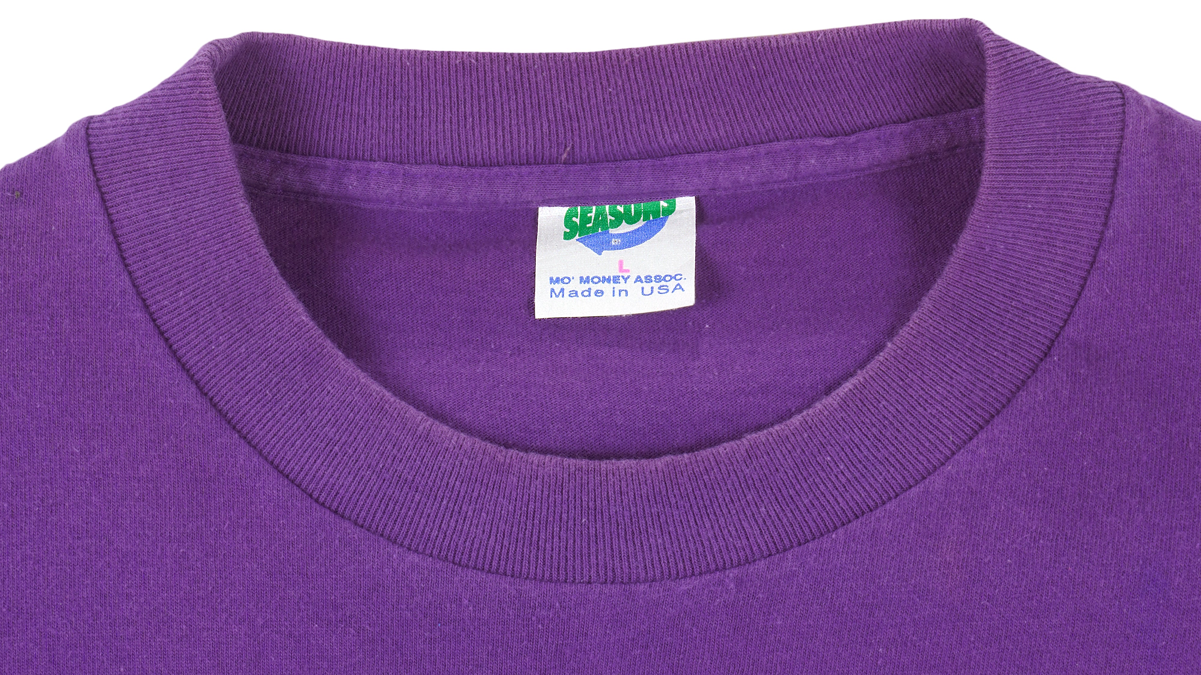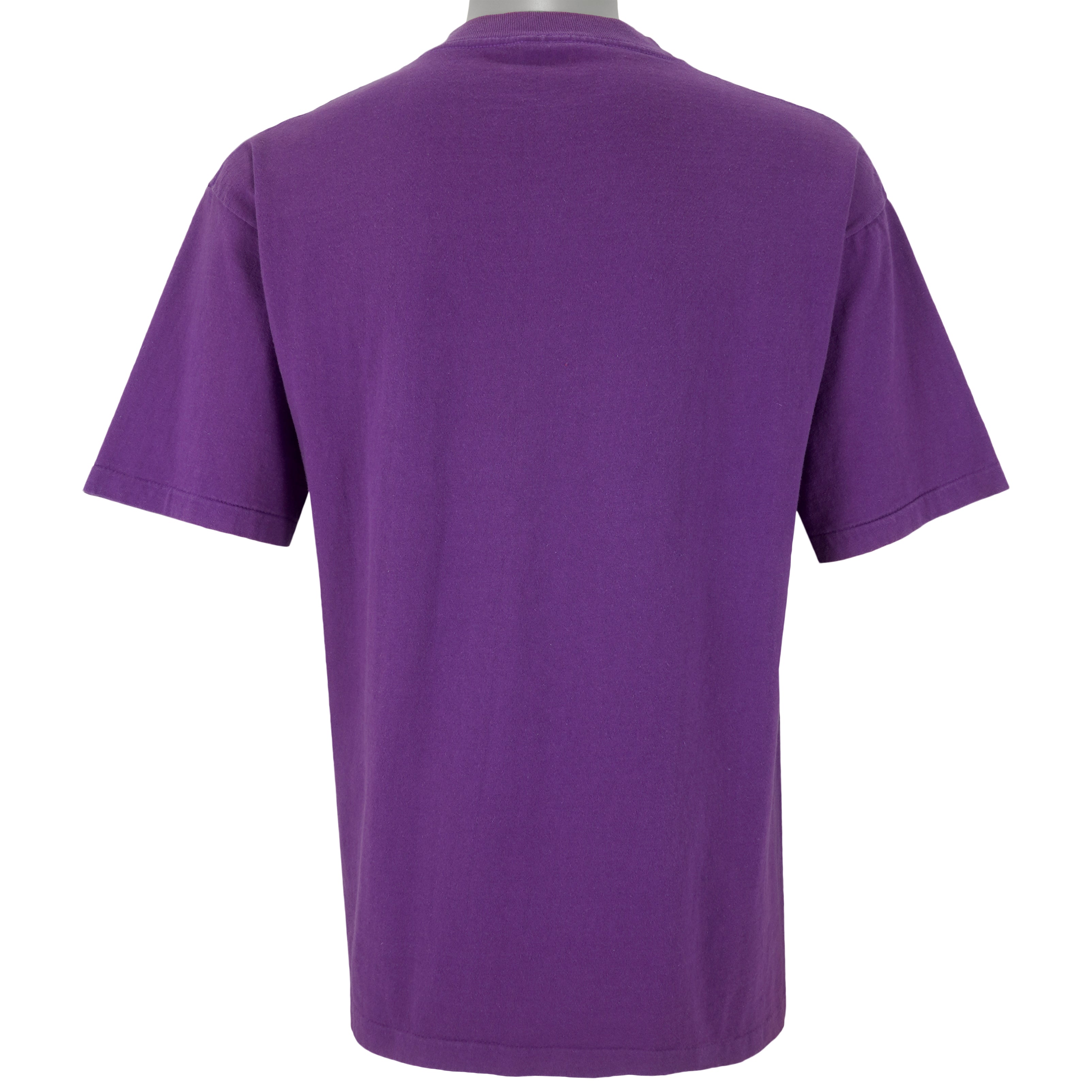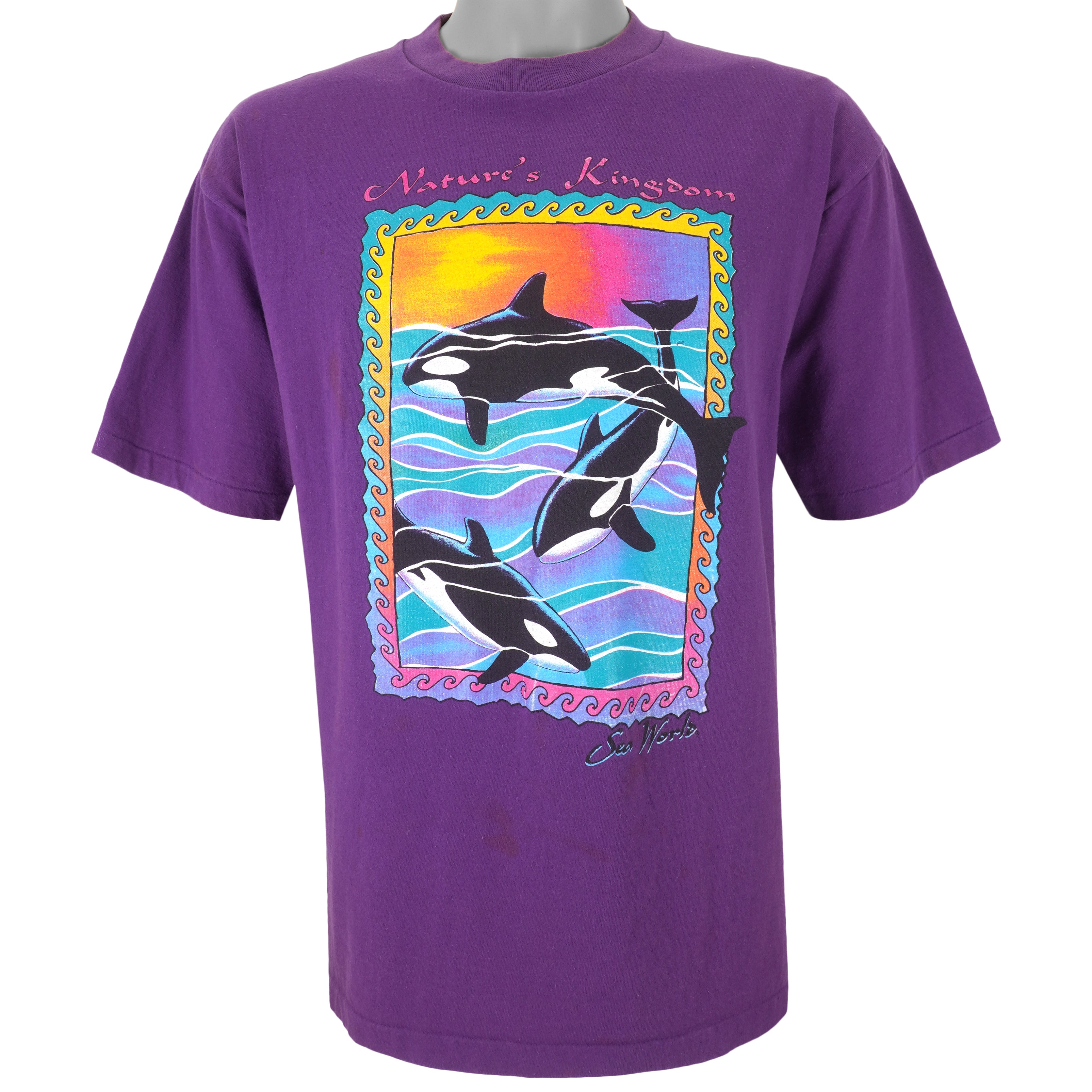 1990s Vintage Nature's Kingdom Seaworld Killer Whales Animal Print Stamp Single Stitch T-Shirt by Seasuns. Purple in color, fits large size and is in very good condition.