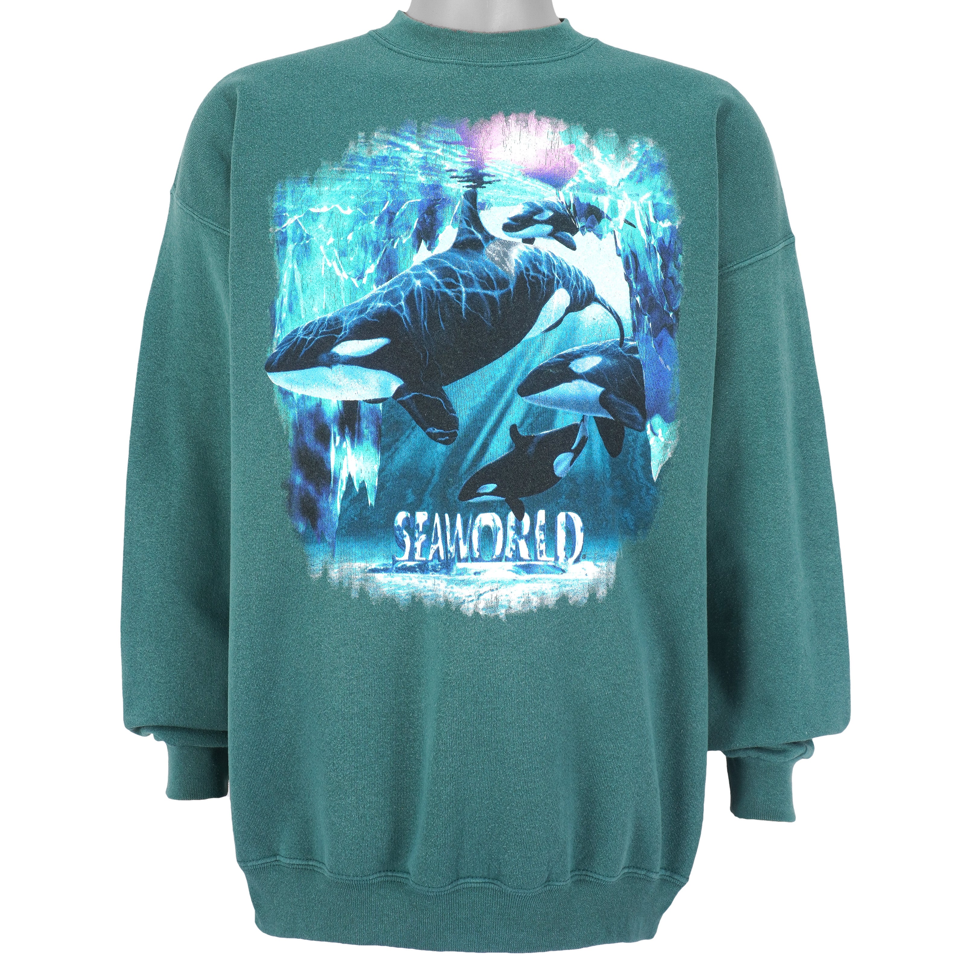 1990s Vintage Sea World Crew Neck Sweatshirt by Tultex. Green in color, fits X-large size and is in excellent condition.