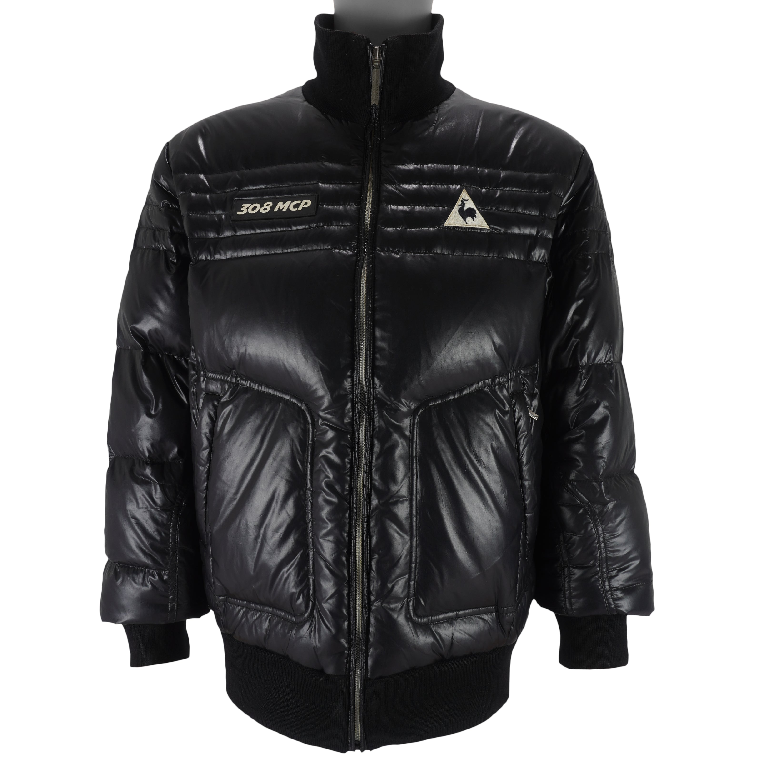 1990s Vintage Le Coq Sportif Peugeot 308 MCP Zip-Up Puffer Jacket. Black in color, fits a large size with minor wear on the sleeves and is otherwise in excellent condition.