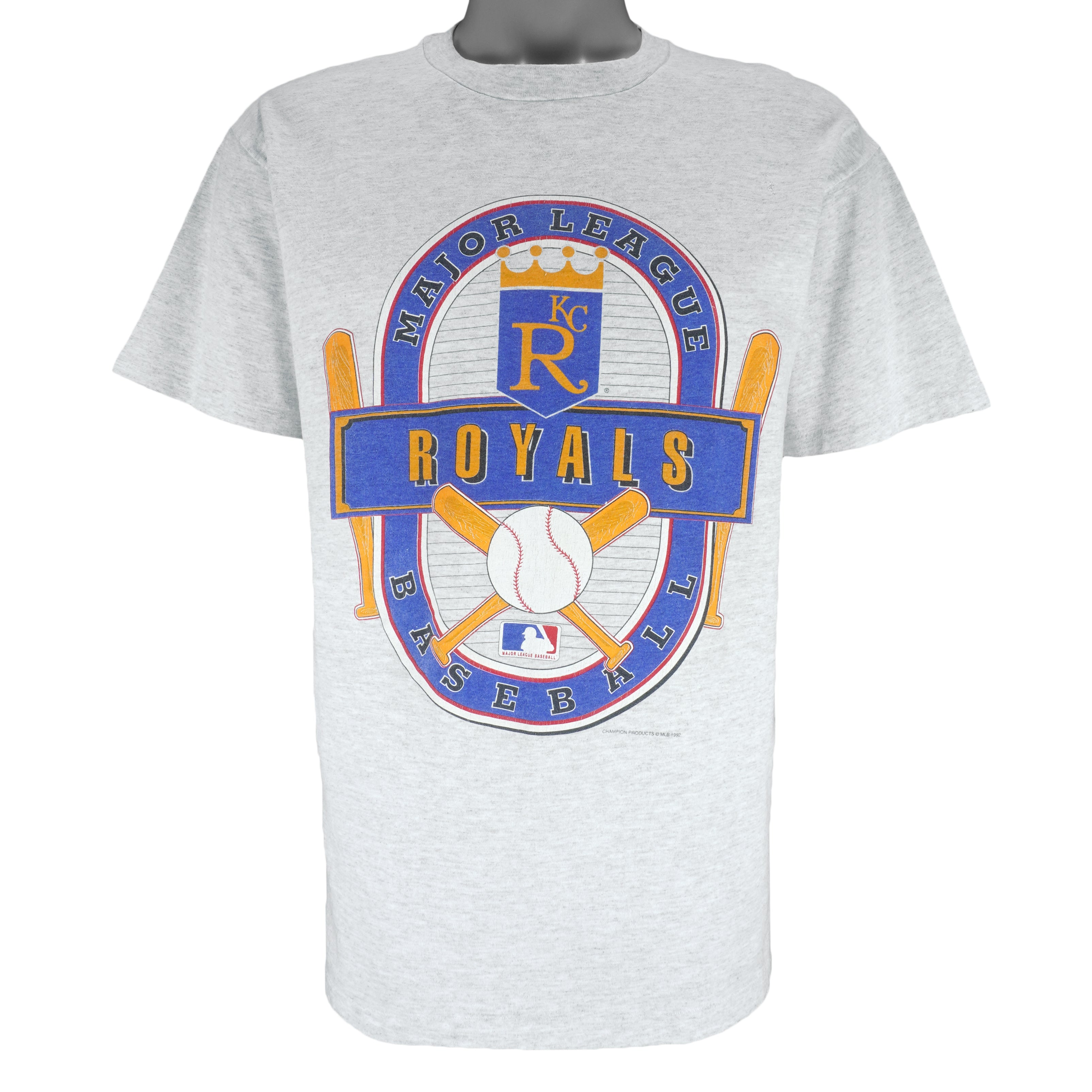 1992 Vintage MLB Kansas City Royals Single Stitch T-Shirt by Hanes. Grey in color, big logo & spell-out, fitting Large size and is in excellent condition.