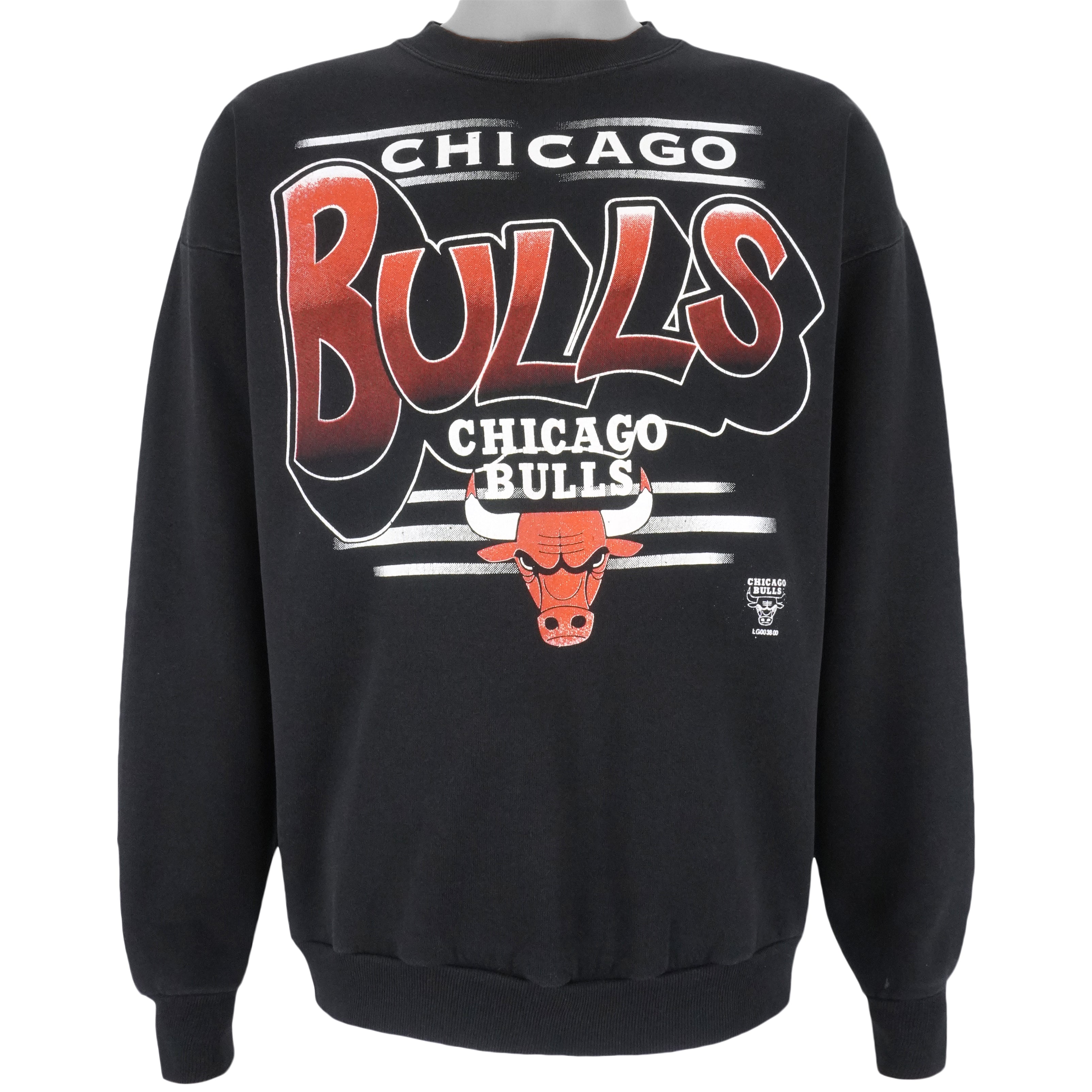 NBA (Logo 7) - Black Chicago Bulls Crew Neck Sweatshirt 1990s Large Vintage Retro Basketball