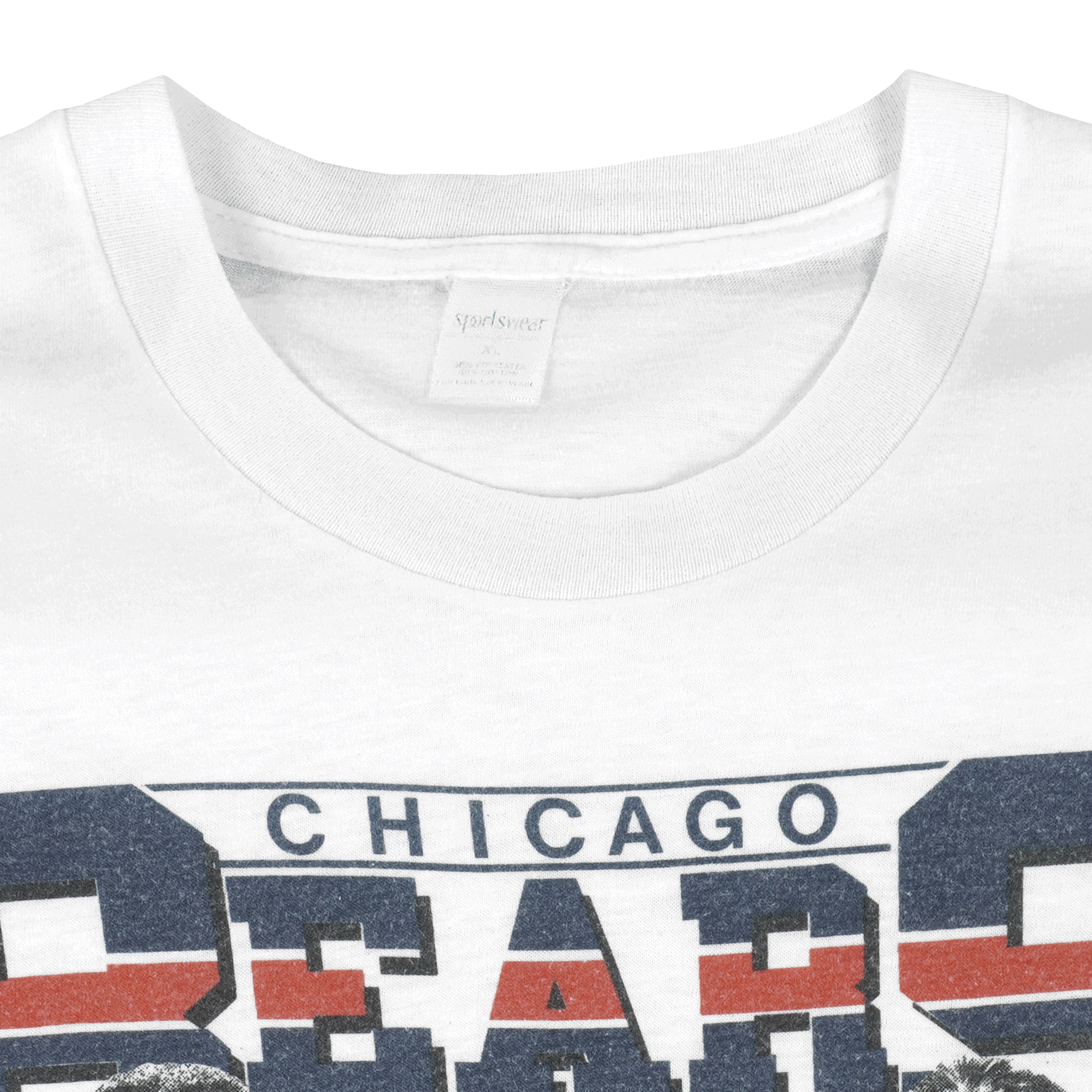 1987 Vintage NFL Chicago Bears Sack Club Caricature T-Shirt by Sport Wear. White in color, big logo & spell-out. Fits X-large size and is in excellent condition.