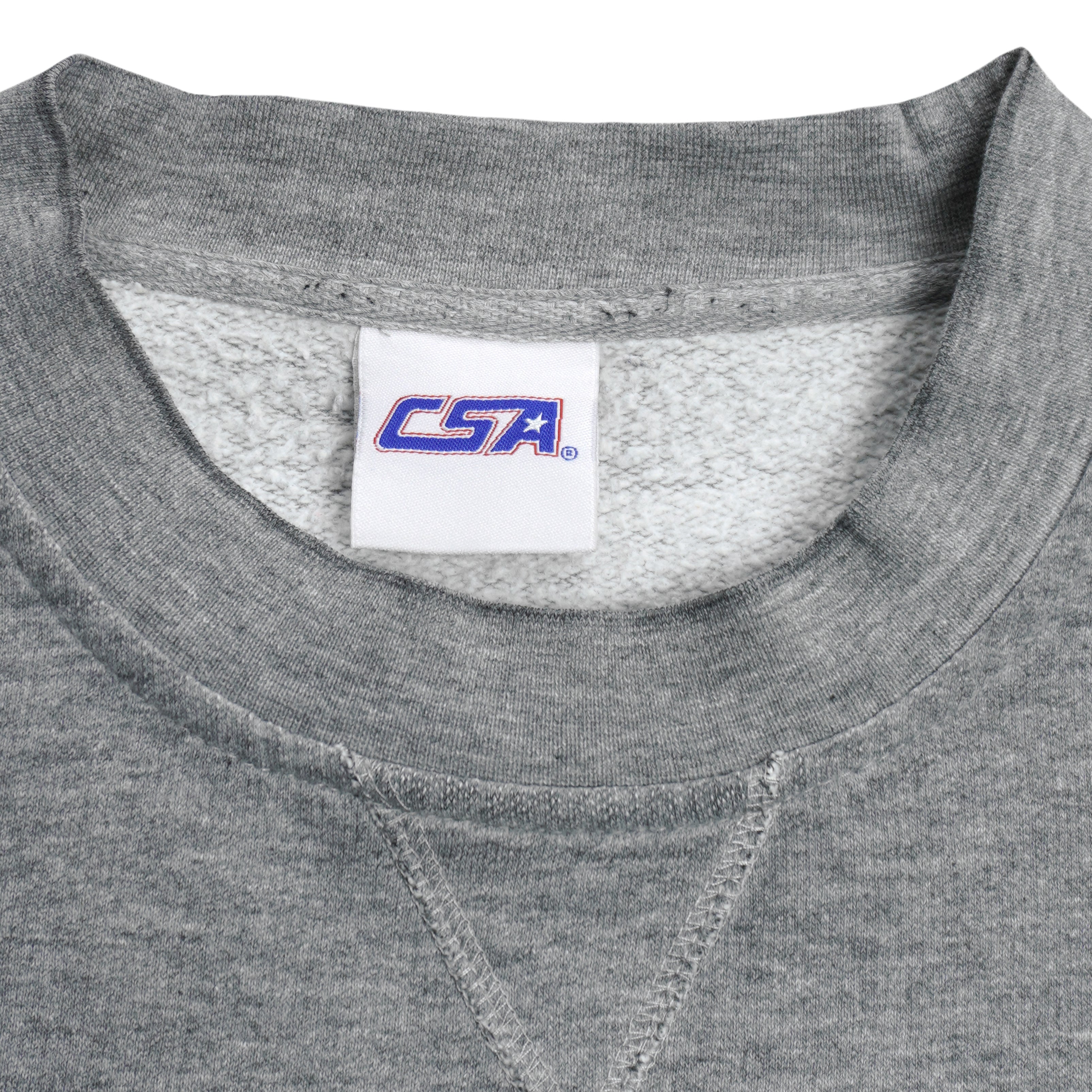 1990s Vintage NHL Minnesota Wild Embroidered Crew Neck Sweatshirt by CSA. Grey in color, fits an X-large size with signs of wear, minor mark on sleeve and is otherwise in very good condition.