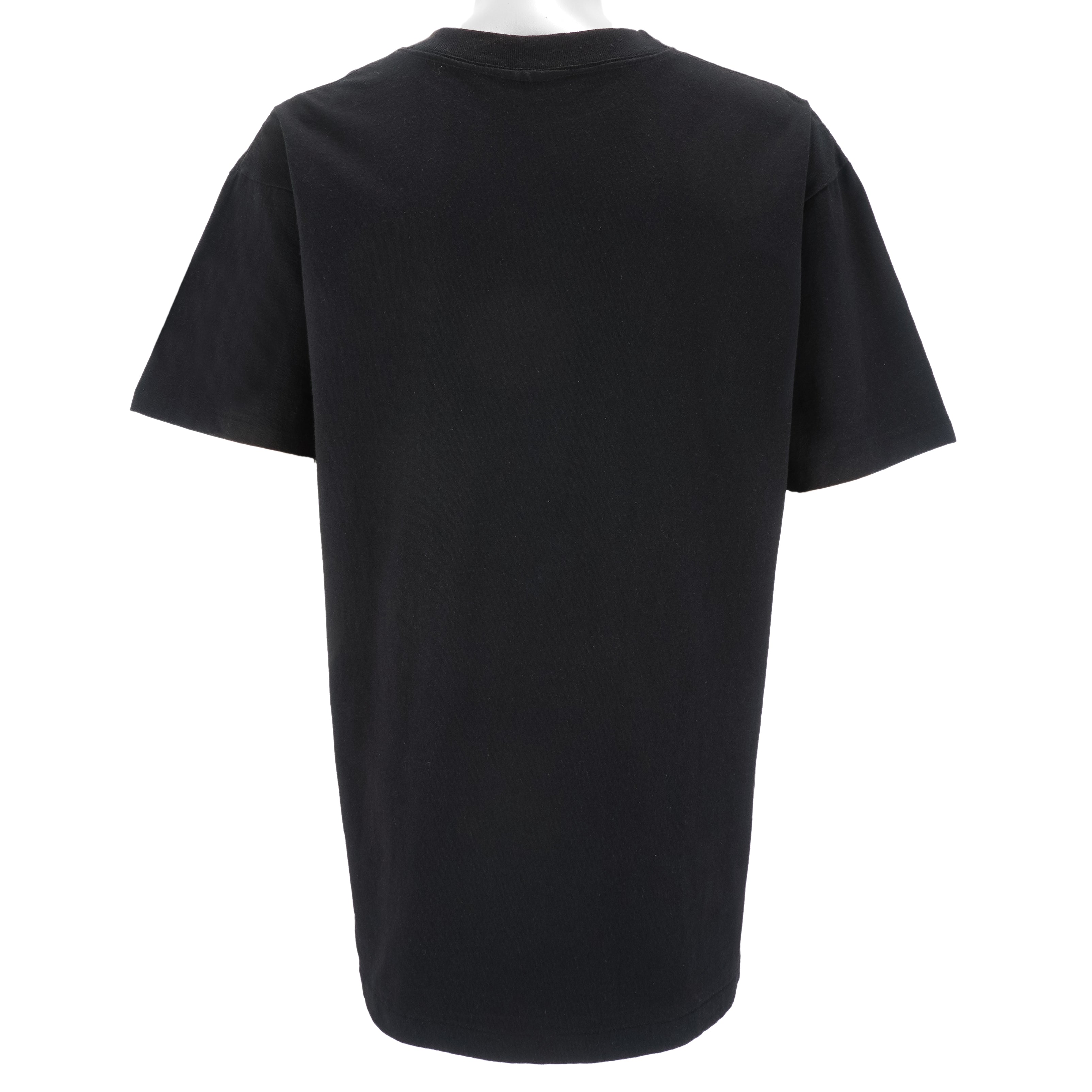 1990s Vintage NHL Minnesota North Stars Ice Rink Clarence Campbell Conference Single Stitch T-Shirt by Nutmeg. Black in color, fits an X-large size and is in excellent condition.