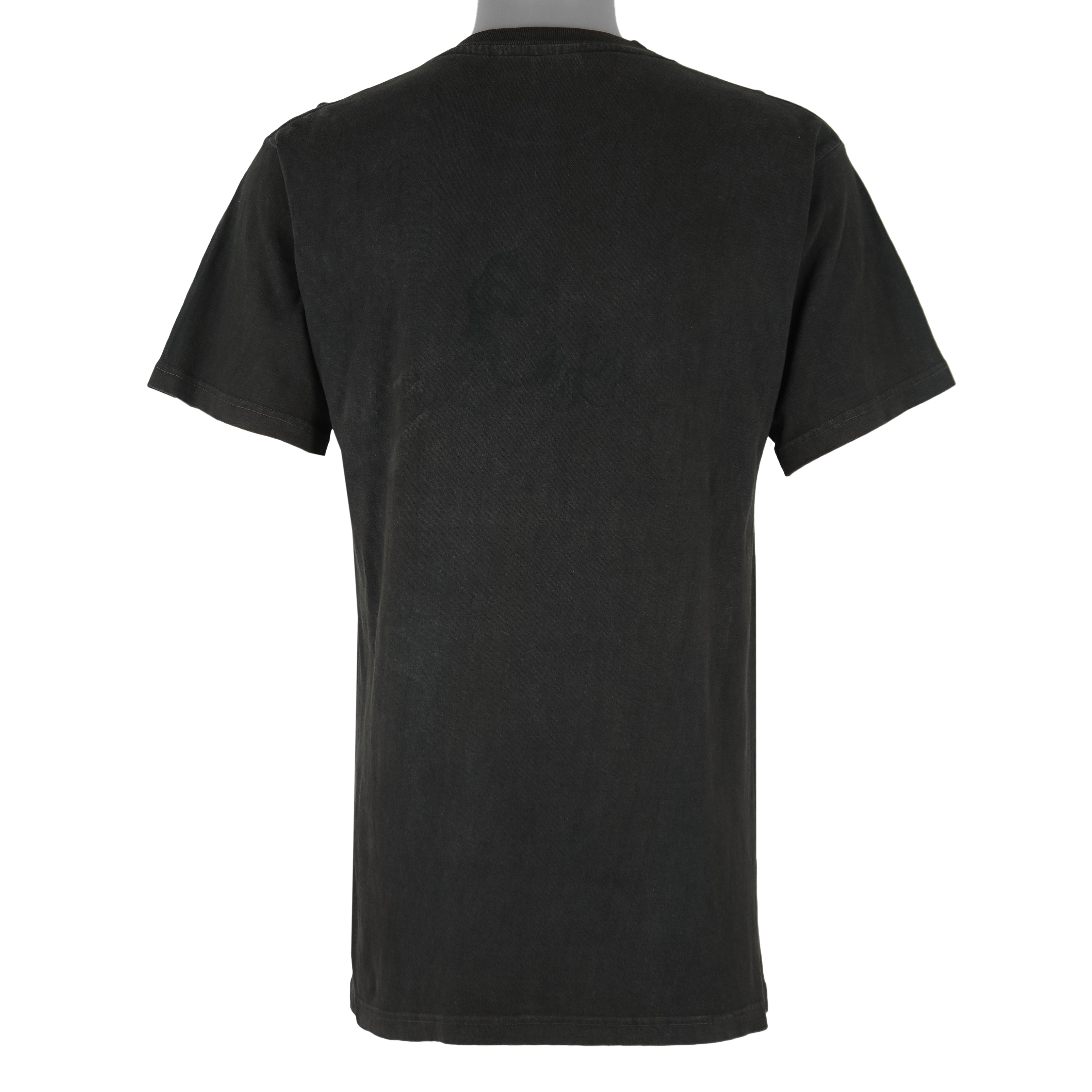1993 Vintage NHL Florida Panthers Spell-Out and Big Logo T-Shirt. Black in color, fitting a medium tall size with fading and marks and is otherwise in very good condition.