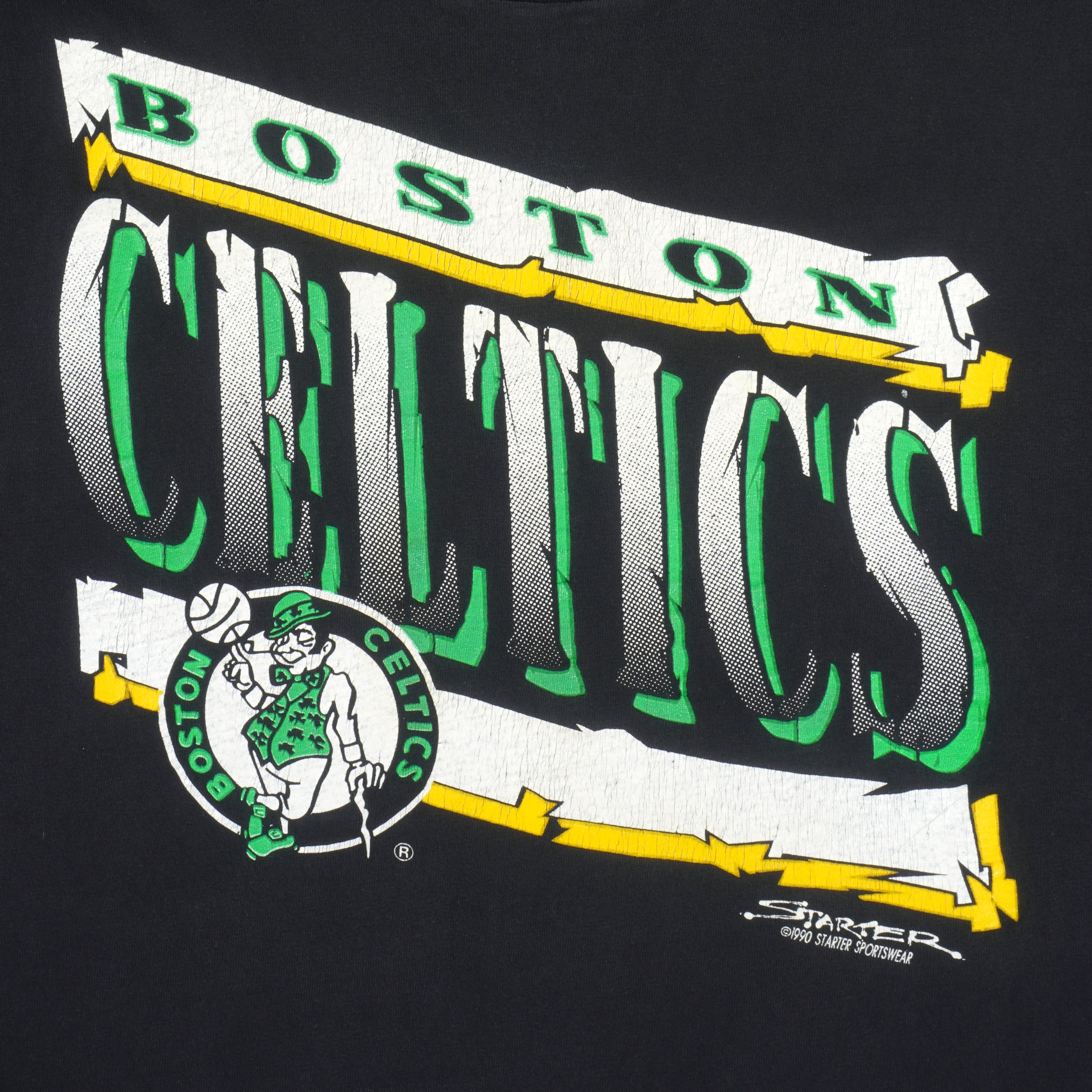 1990 Vintage Starter NBA Boston Celtics Spell-Out T-Shirt. Black in color, fitting medium to large size and is in excellent condition.