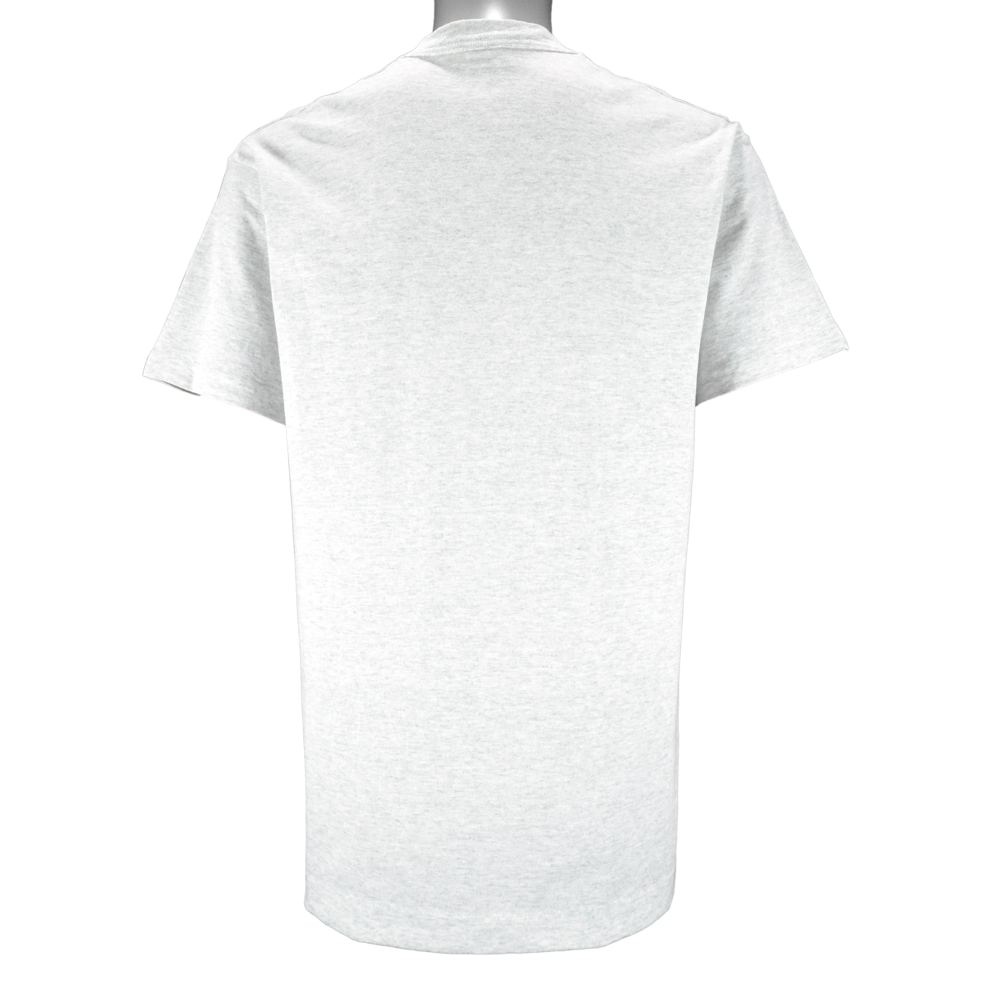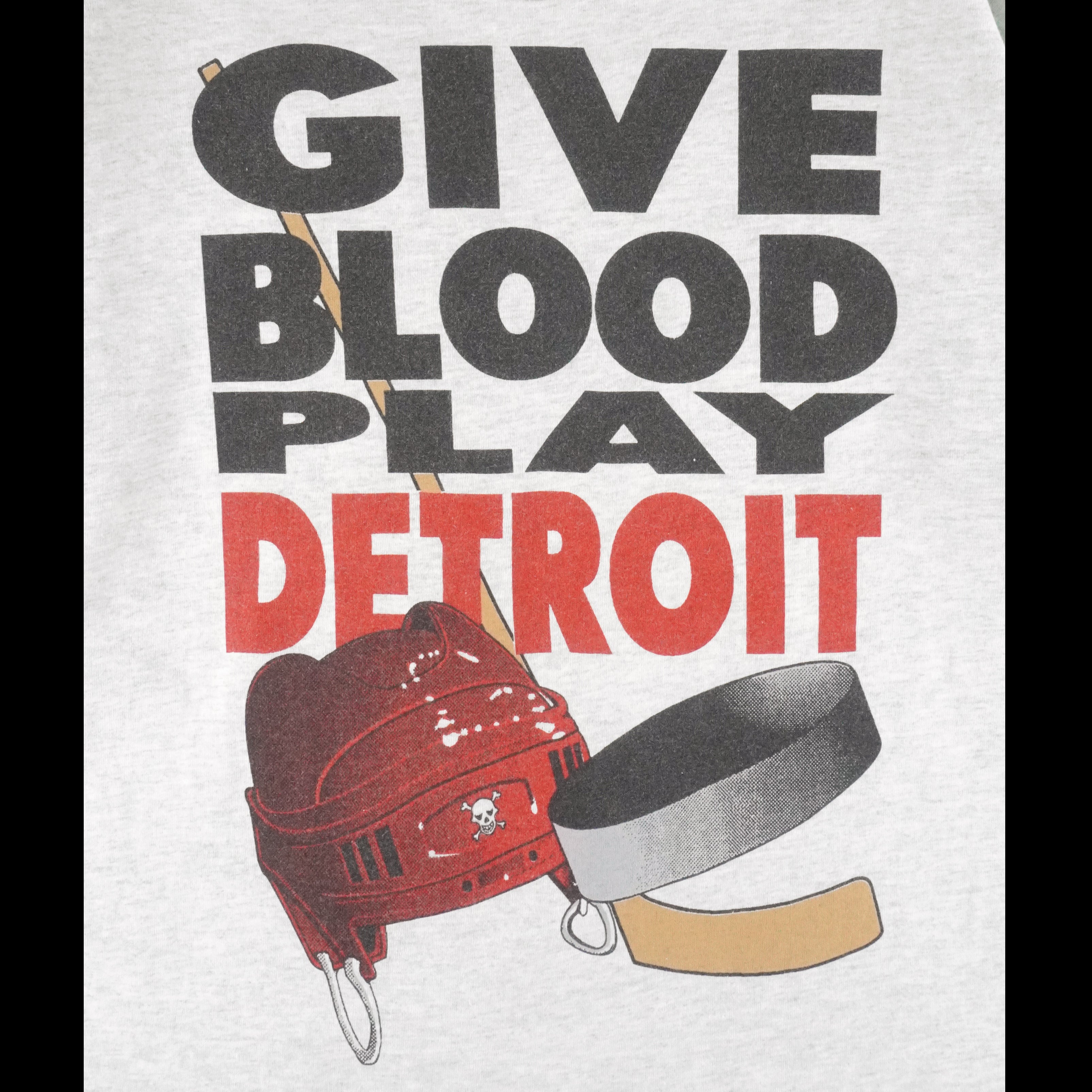 1990s Vintage NHL Red Wings Give Blood Play Detroit T-Shirt by Fruit Of The Loom. Grey in color, big spell-out, fits large size and in excellent condition.