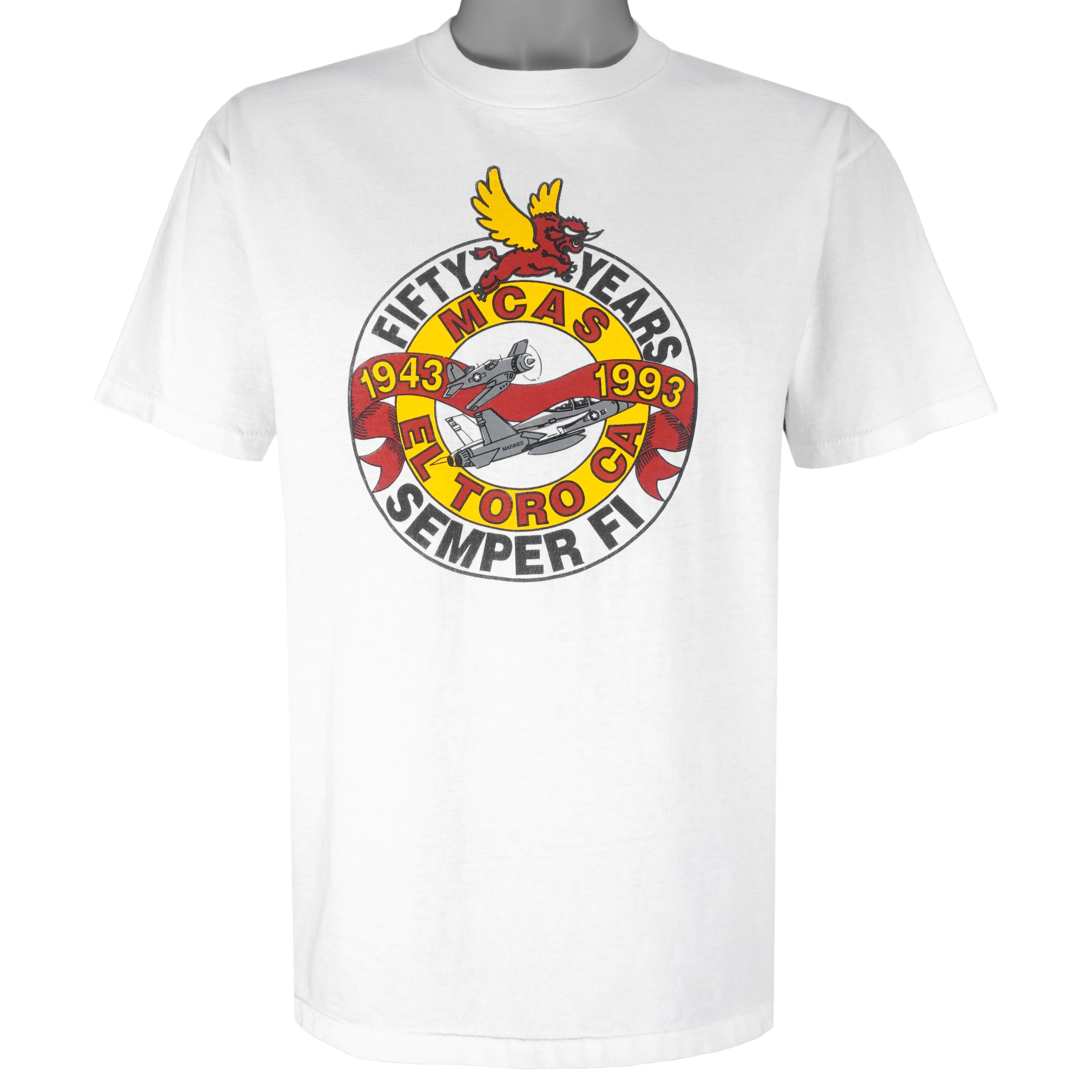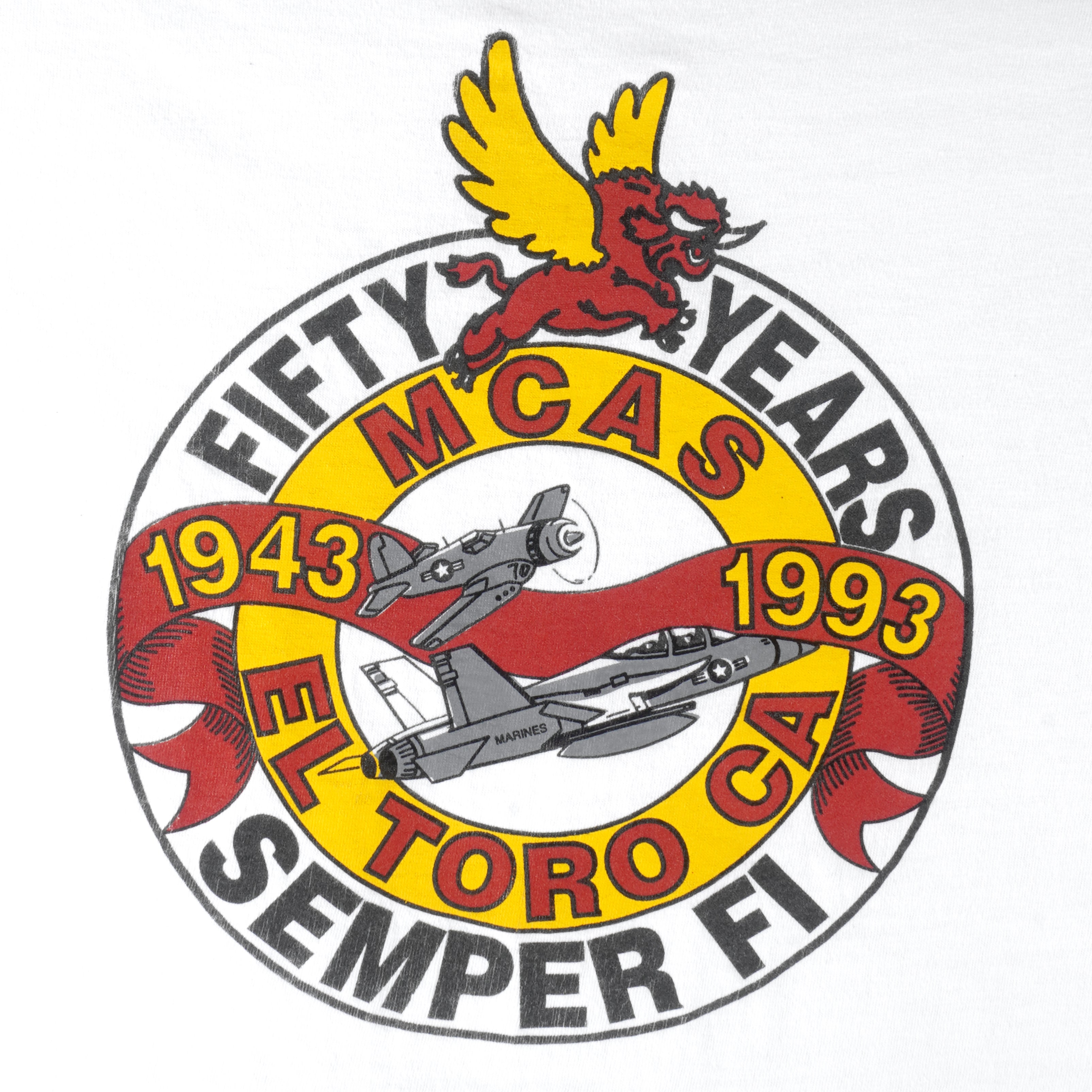 1993 Vintage USA MCAS EL Toro, CA - Fifty Years of Semper Fi Air Show Single Stitch T-Shirt by Oneita. White in color, fits a large size and is in a excellent condition.