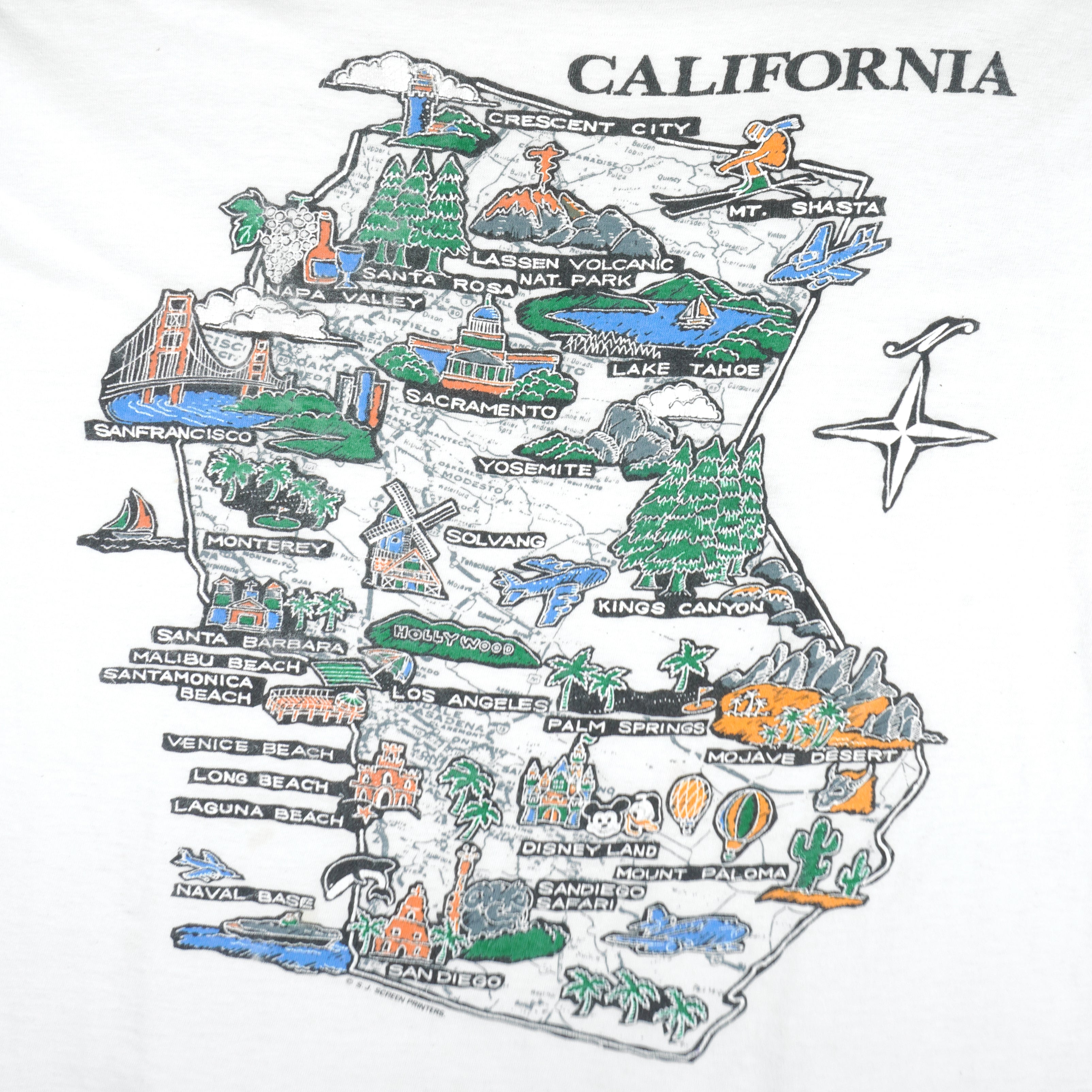 1990s Vintage California Map T-Shirt by Short Hills Tee. White in color, tag is X-large but fits like large size and is in very good condition.