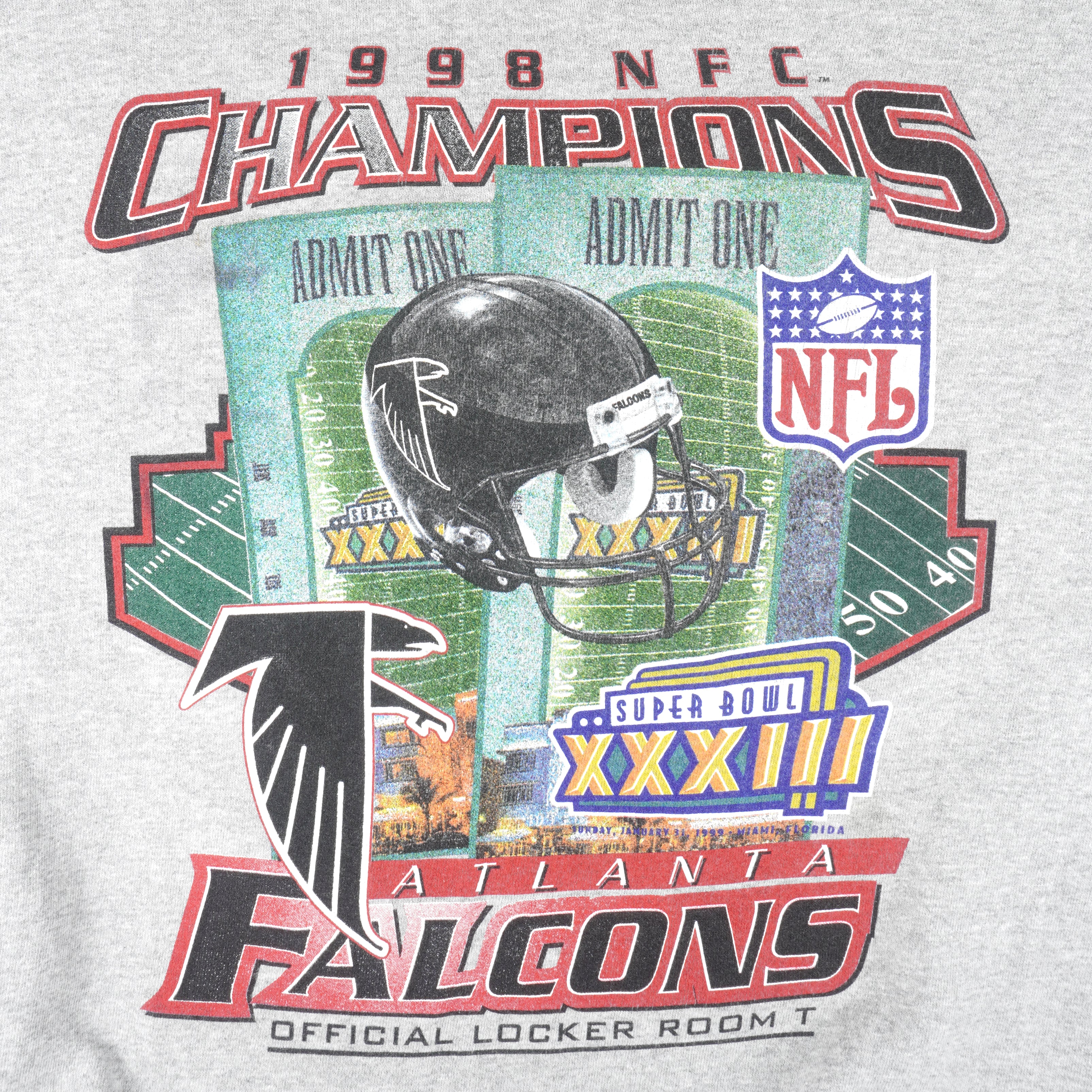 1998 Vintage NFL Atlanta Falcons Super Bowl 28th Champions Crew Neck Sweatshirt. Grey​ in color with big spell-out on the front. Fits X-large size and in excellent condition.