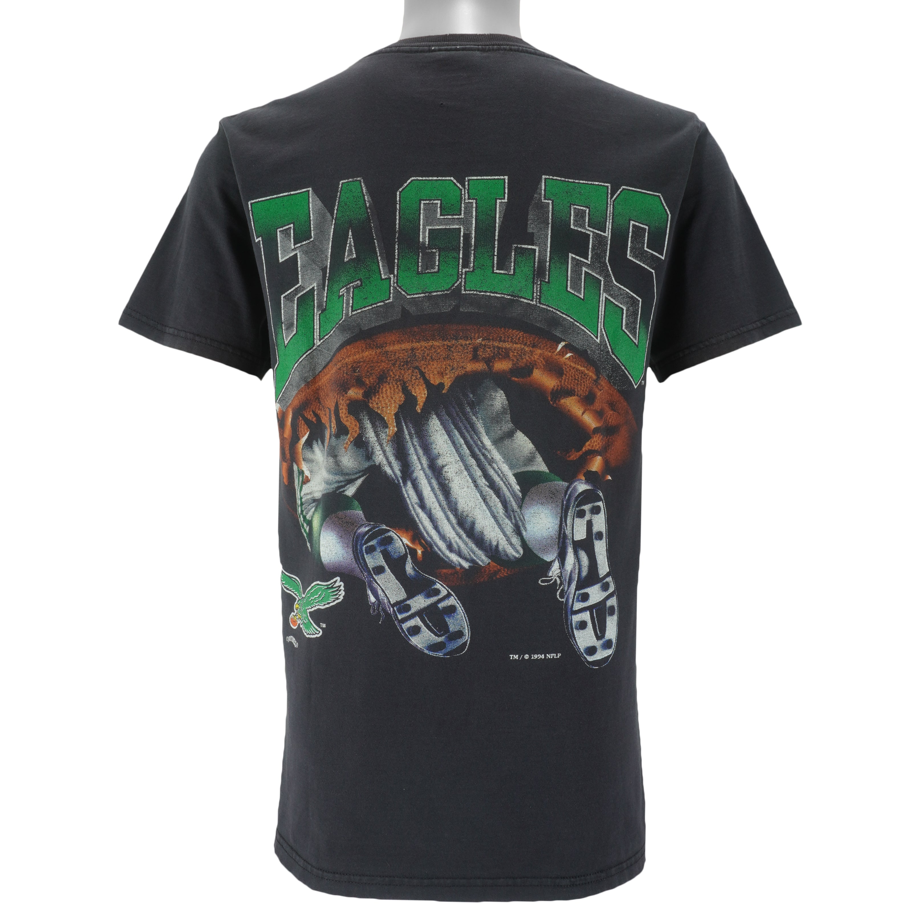 1994 Vintage NFL Philadelphia Eagles Breakout Serie Big Spell-Out T-Shirt by Nutmeg. Black in color, fits medium tall size and is in very good condition.