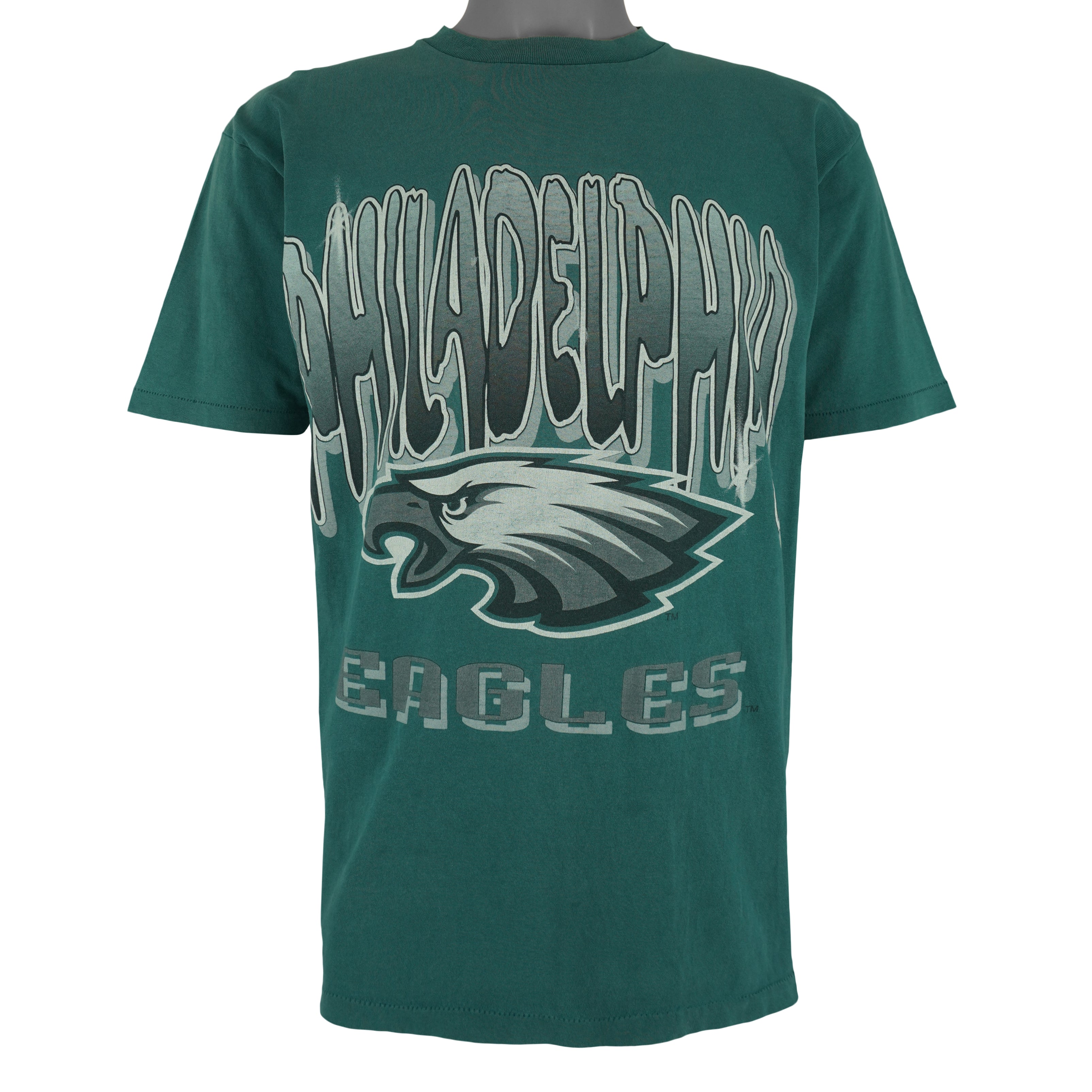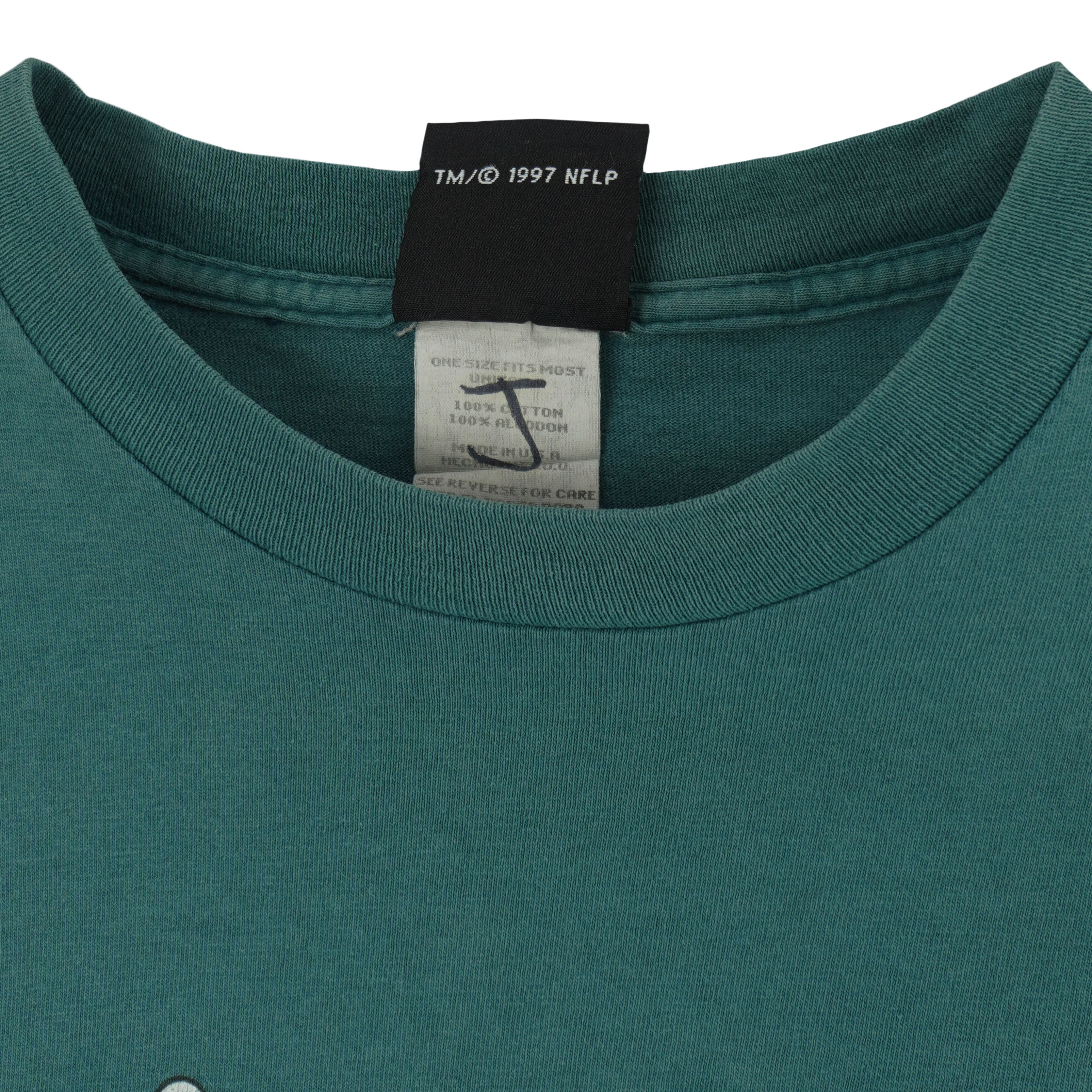 1997 Vintage NFL Philadelphia Eagles Single Stitch T-Shirt. Green in color, big logo & spell-out, fits a medium size with fading area, minor tear on sleeve and is otherwise in very good condition.
