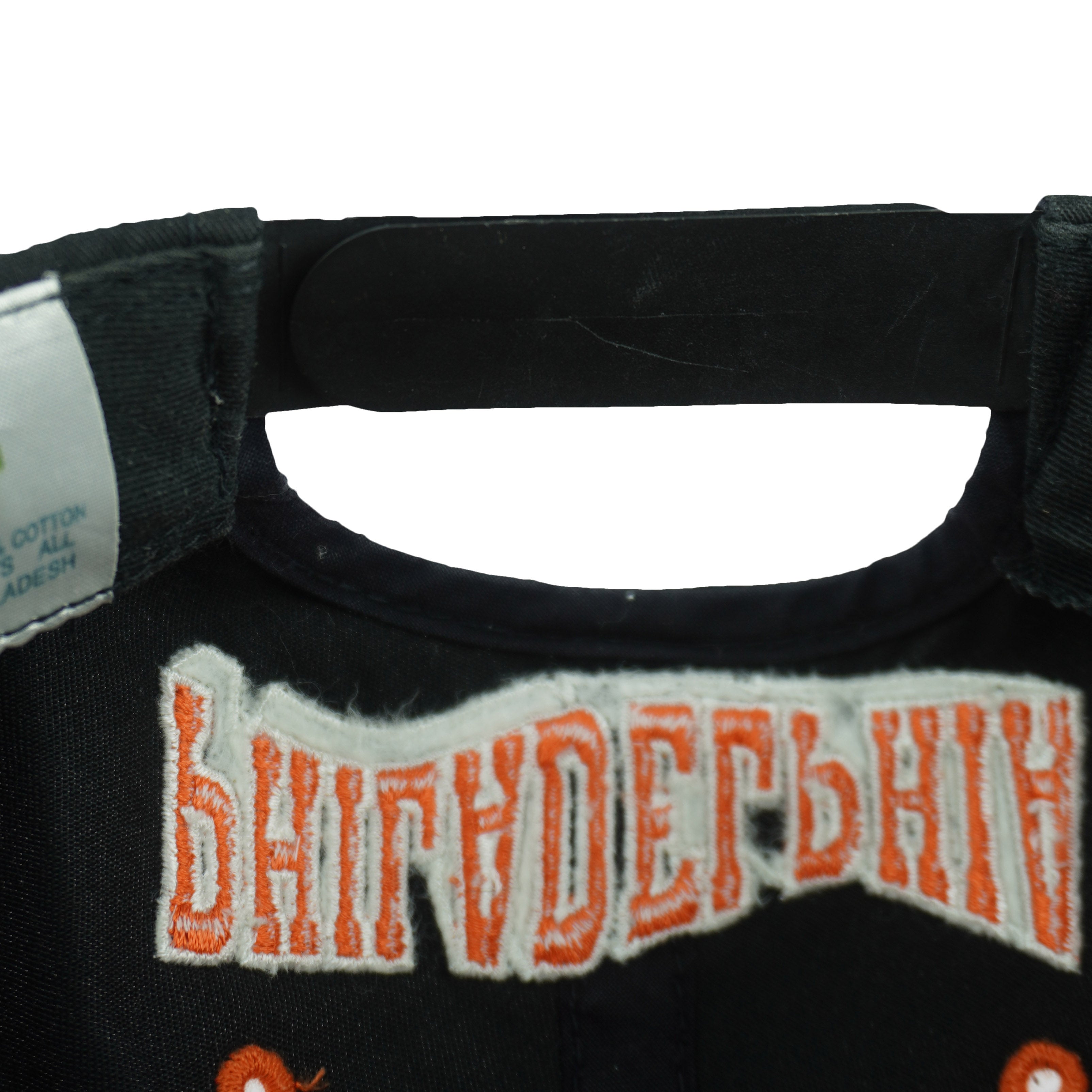 1990s Vintage NHL Philadelphia Flyers Embroidered Hat by The G Cap. Black and orange in color, big spell-out on front and back, adjustable size with signs of wear, worn-out on inside lining but still full functioning and is otherwise in very good condition.