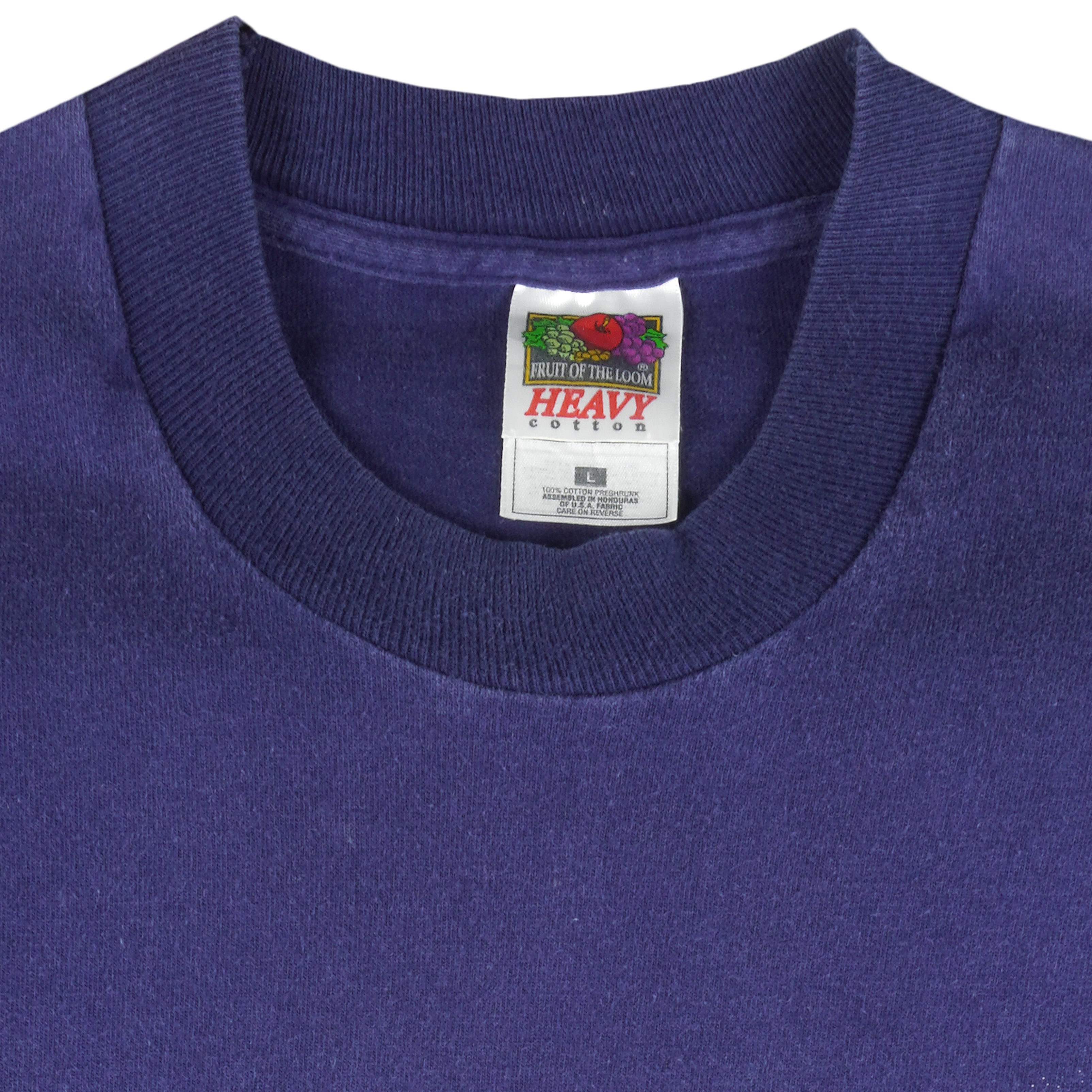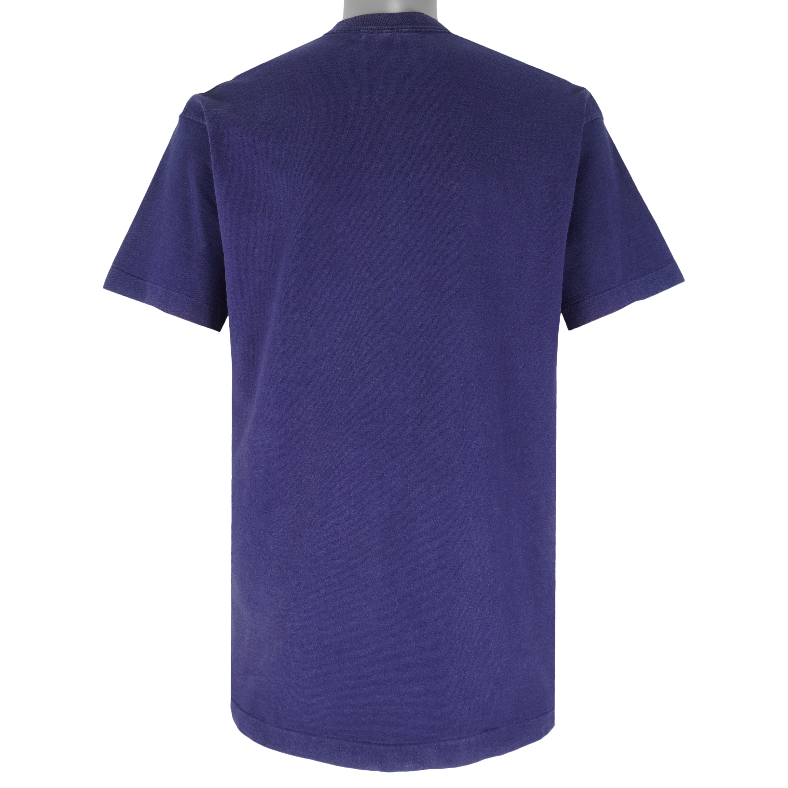 1990s Vintage New England Patriots Spell-Out T-Shirt by Fruit of the Loom. Blue in color. The tag shows size Large but fits like a Medium Tall. Minor wear, otherwise in very good condition.