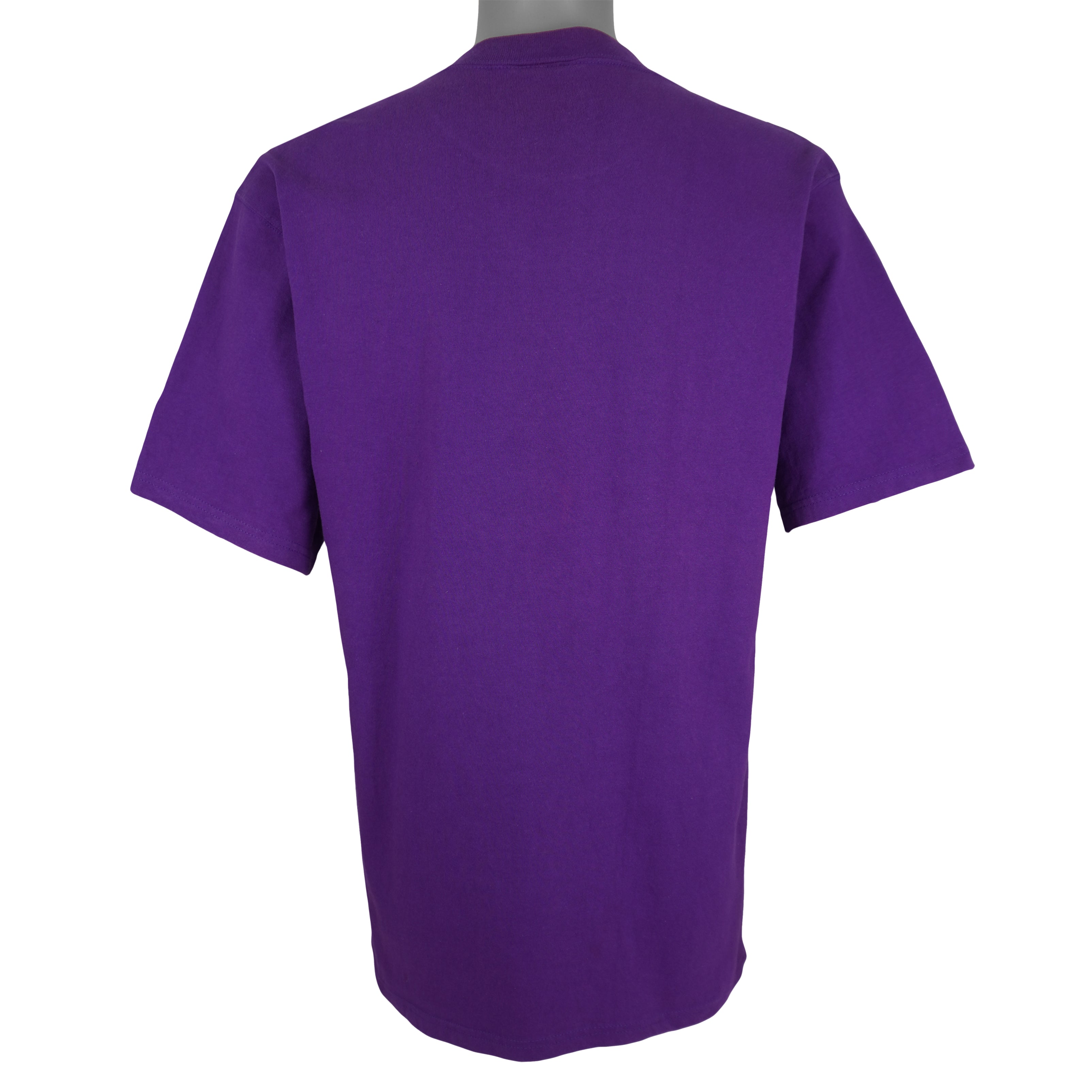 1990s Vintage NFL Minnesota Vikings T-Shirt by Logo Athletic. Purple in color with spell-out & logo, fitting a large size with signs of wear - minor marks on front and is otherwise in very good condition.