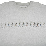 1990s Vintage Vermont Trekking Moose Spell-Out Crew Neck Sweatshirt. Grey in color, fitting a large size with signs of wear, minor marks on torso and sleeve and is otherwise in very good condition. Perfect for Vermont enthusiasts, nature lovers, or a classic retro look.