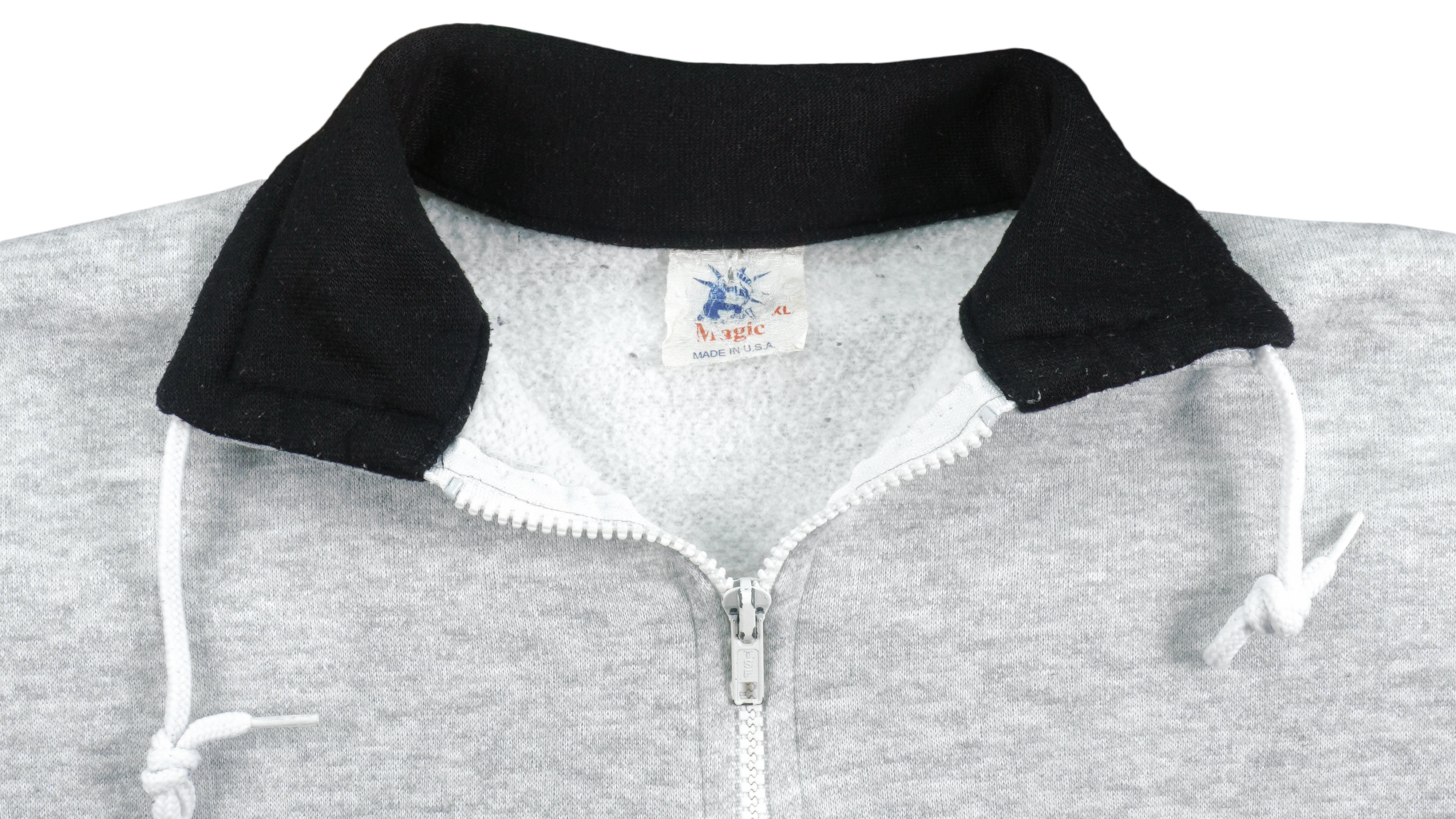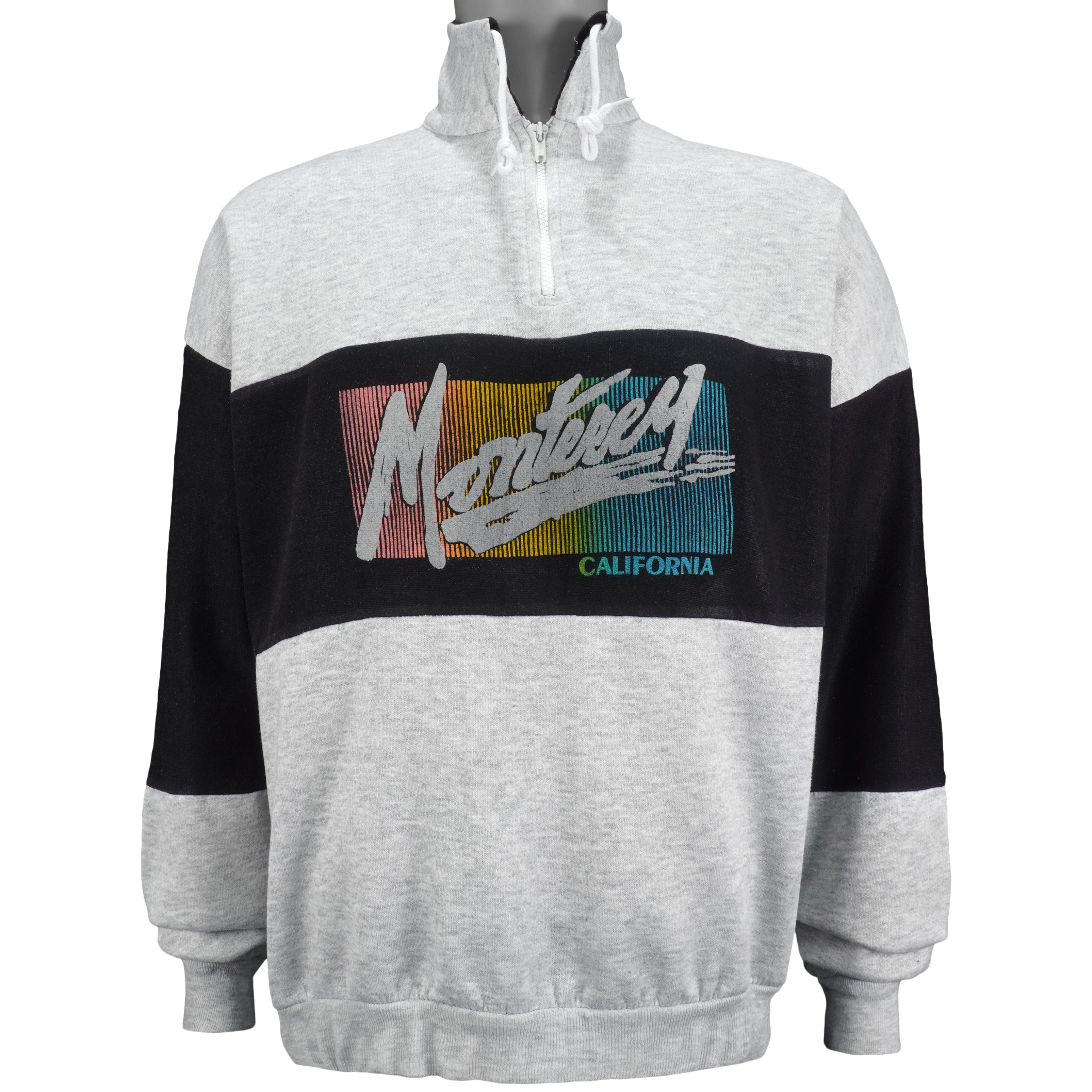 1990s Vintage Monterey, California Spell-Out 1/4 Zip Sweatshirt by Magic. Grey with black in color, fits x-large size and is in excellent condition.