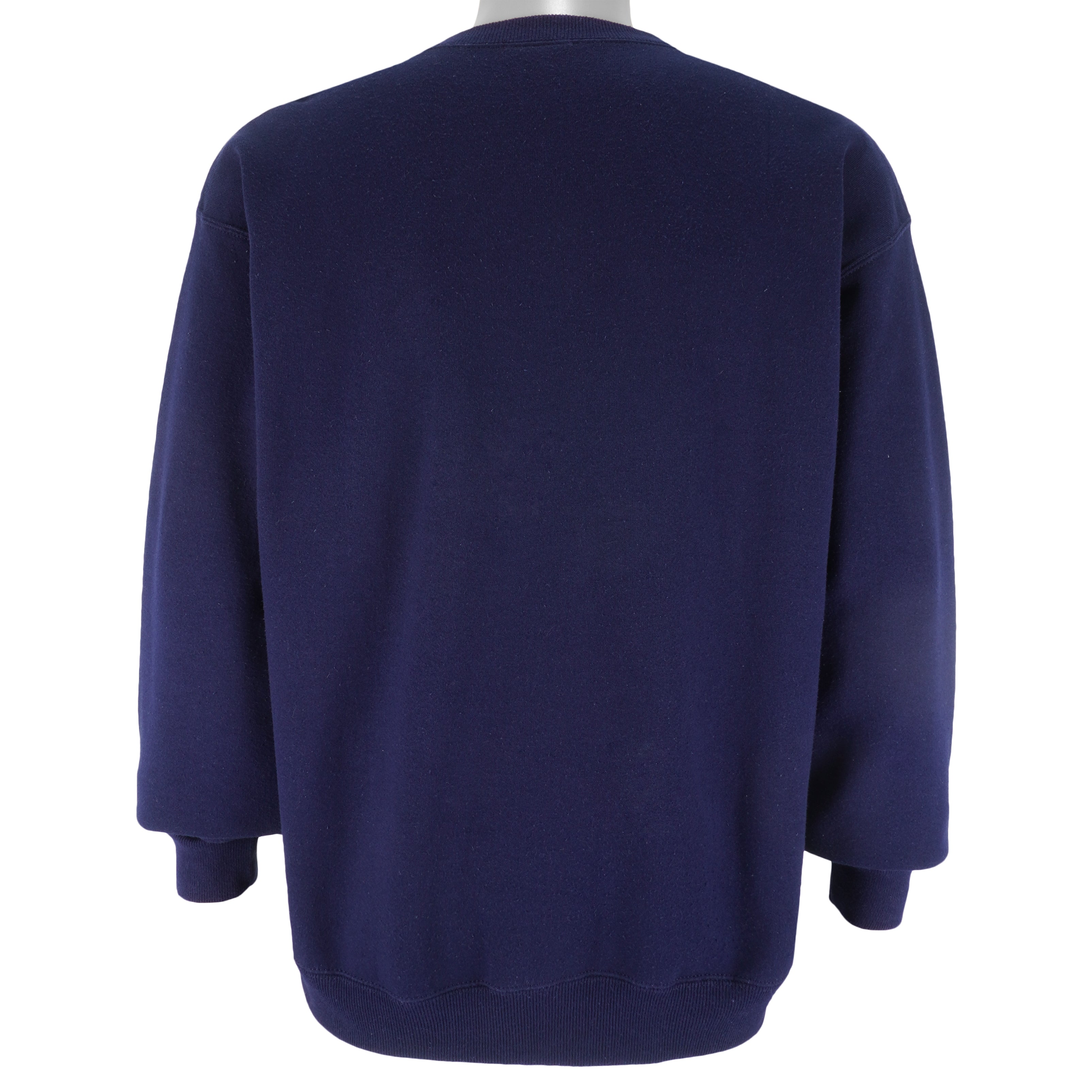 1990s Vintage NCAA UCLA Bruins Spell-Out Crew Neck Sweatshirt by Santee. Dark blue in color, fitting in large size and in excellent condition.