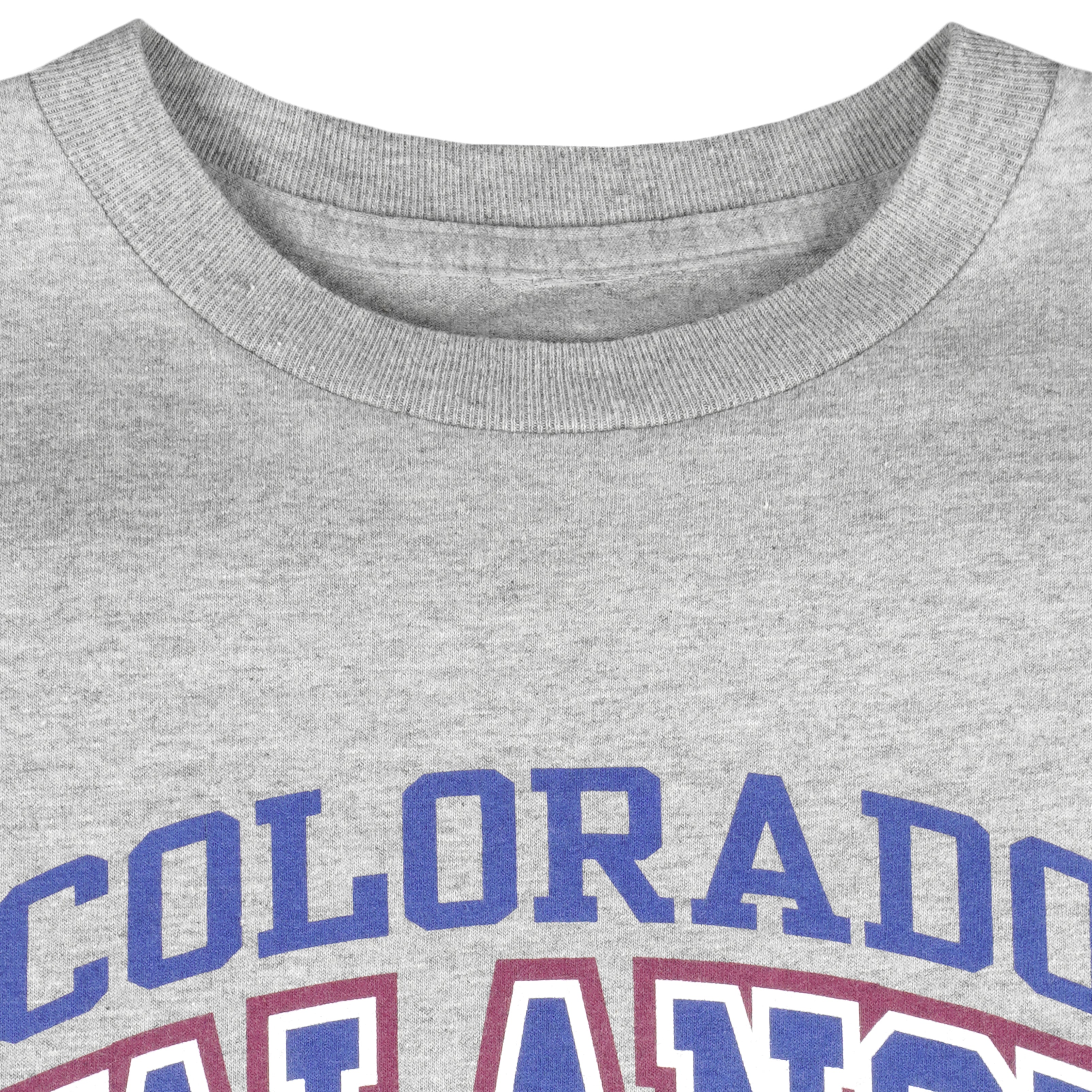 1990s Vintage NHL Colorado Avalanche Western Conference Stanley Cup T-Shirt by CCM. Grey​ in color with big spell-out, fits large size and is in excellent condition.