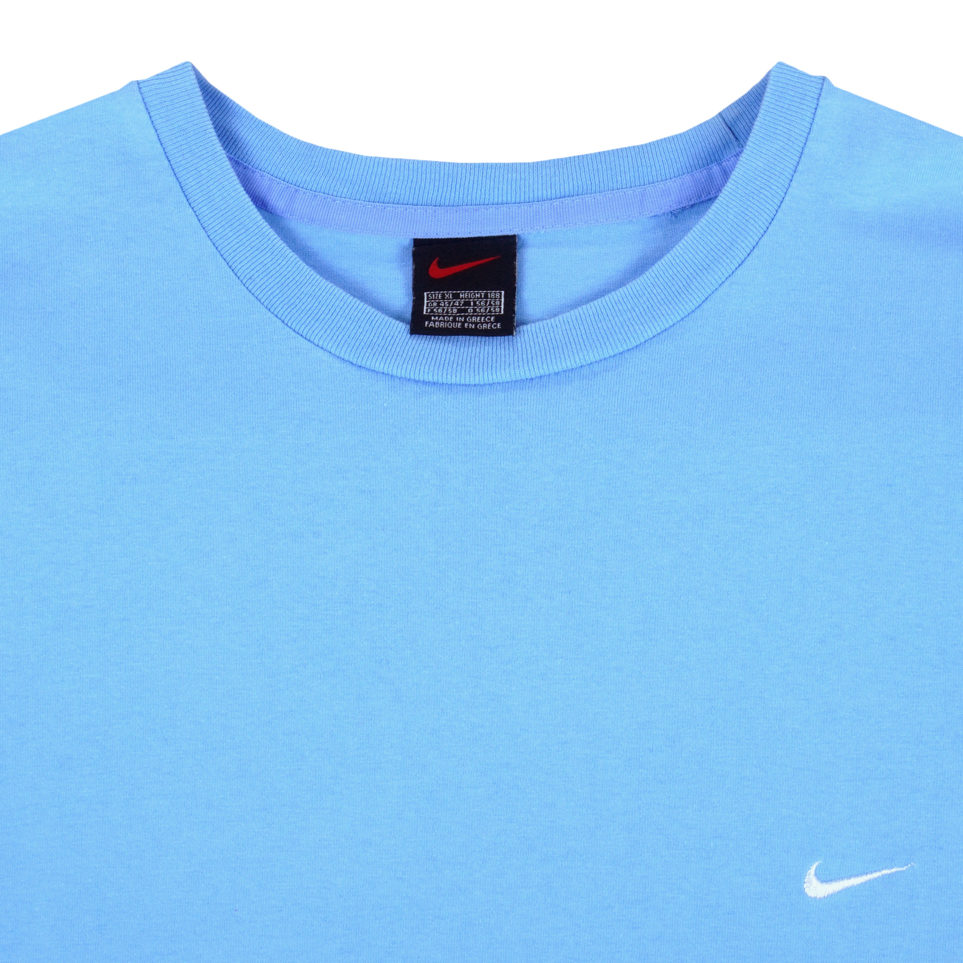 1990s Vintage Nike Classic Embroidered Logo T-Shirt. Light blue in color, fits X-large size and is in excellent condition.
