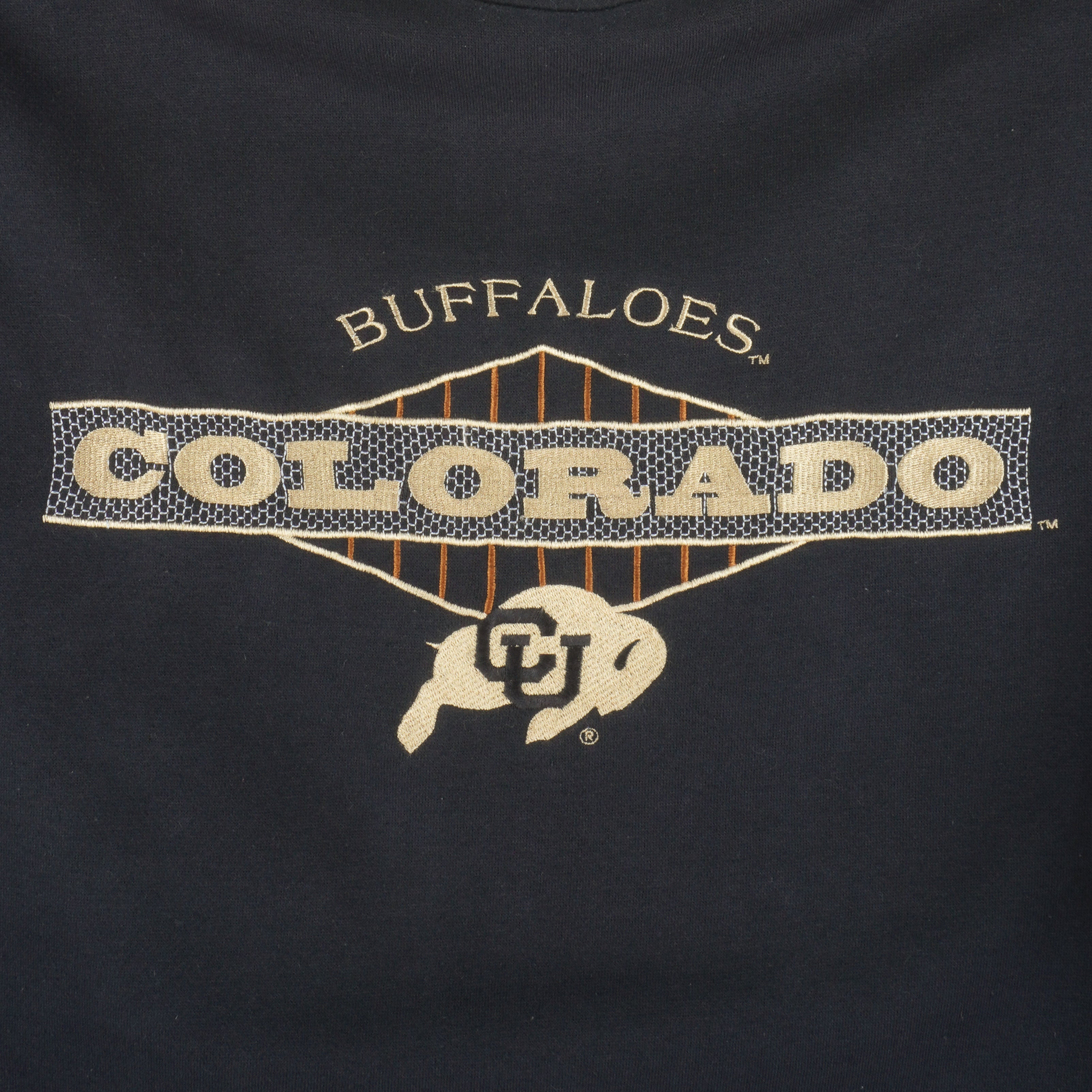 1990s Vintage Starter NCAA Colorado Buffaloes Crew Neck Sweatshirt. Black​ in color, big embroidered spell-out, fits X-large size and is in excellent condition.